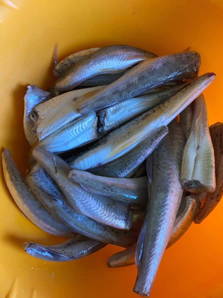 Один из друзей мужа поймал много рыбы и презентовал нам вот такую кучку наваги, даже почистил сам.