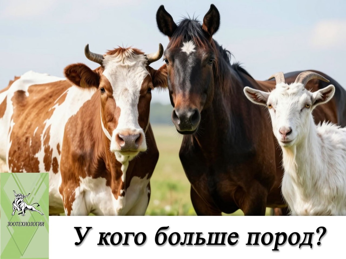 У коров больше пород, чем у коз и лошадей. 🐮 По данным на 2026 год, в мире насчитывается более 1000 пород крупного рогатого скота (коров). Некоторые источники указывают цифру около 1200 пород, из которых примерно 800 считаются официально признанными. Породы коров делятся на три основные группы: молочные, мясные и комбинированные (мясо-молочные). 🐐 Козы имеют около 600 пород по данным всемирного банка данных о генетических ресурсах животных ФАО. Однако точное число пород коз неизвестно, так как нет единого подхода к их идентификации, а значительная часть местных пород до сих пор не описана и не изучена. В научной литературе встречаются упоминания пород, не включённых в базы данных ФАО или словарь Мэйсона. 🐴 Лошади насчитывают около 300 пород по разным оценкам. В 1993 году упоминалось о 427 породах, но данные со временем меняются из-за исчезновения некоторых пород и появления новых. Породы лошадей классифицируют по типу использования (верховые, упряжные, рысистые, скаковые и др.) и