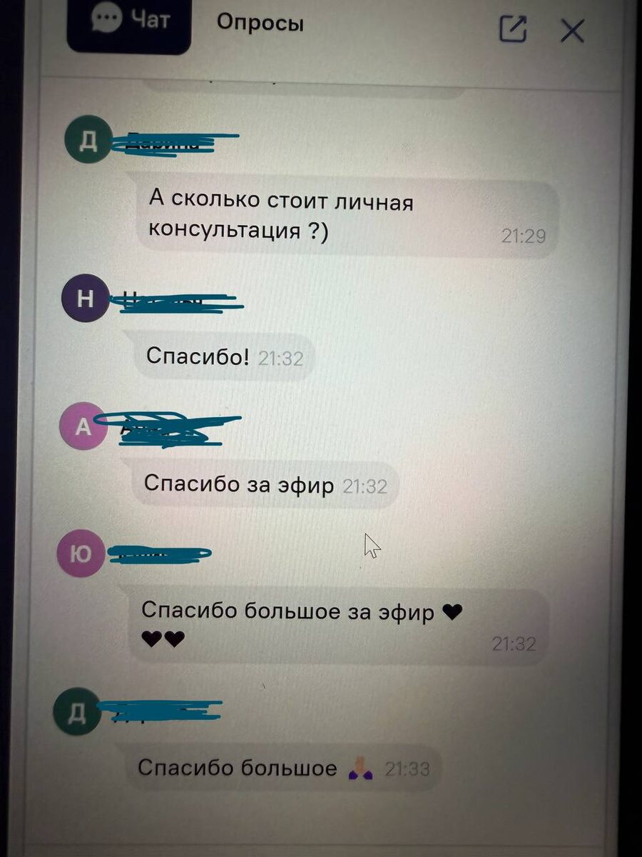 Мне очень важно слышать их читать . Рада, что вам было полезно! Я всегда радуюсь живому контакту, когда можно просто поговорить, поэтому формат эфира- конференции, когда каждая из вас может включить микрофон, задать вопрос голосом - мне максимально откликается. 2 РАЗА В МЕСЯЦ ПО СРЕДАМ В 20.00 планирую проводить. Как вам идея? Как-то маркетолог меня спрашивала, через что к вам приходят люди в терапию? Я всегда отвечала – либо сарафанка, либо через ЭФИР, где случается живой настоящий контакт. Благодарю за доверие, дорогие мои.