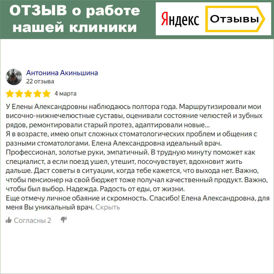 Новый отзыв о работе МЦ "Ваше здоровье" на Яндекс.Картах