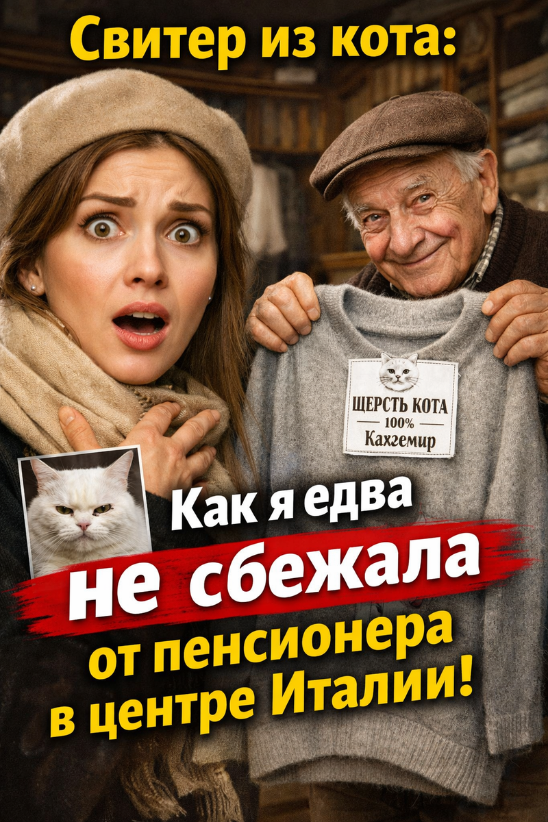 Я смотрела на него и думала: может, у пожилых итальянцев весной обострение? Или он надо мной издевается? Пора незаметно отступать к выходу, пока он не предложил проверить качество на зуб. Но на всякий случай я глянула на этикетку. На меня оттуда смотрел белый кот, а под ним красовалась надпись: «ШЕРСТЬ КОТА. 100% кашемир. Сделано в Италии».