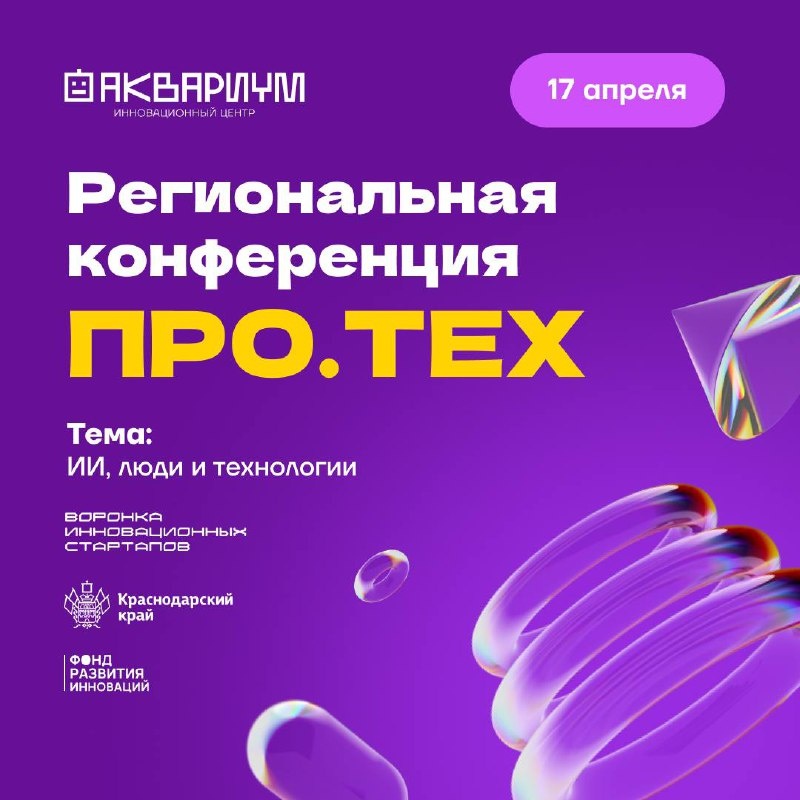 = ∞ Седьмая конференция ПРО.ТЕХ Вокруг столько разговоров о том, как ИИ и роботизация изменят рынок «в будущем». А на ПРО.ТЕХе поговорим о том, что меняет его уже сегодня ⤵️ Что в программе: ✔️ Как классический бизнес становится технологическим (и не скатывается в убыток); ✔️ ИИ, который работает на выручку, а не просто существует в презентациях; ✔️ Кооперация крупных корпораций и стартапов; ✔️ Как банки, телеком и госструктуры запускают инновации; ✔️ Инвестиции в технологические проекты: критерии и реальные цифры Ждём предпринимателей, собственников, стартаперов, инвесторов, разработчиков, исследователей и всех, кто понимает, что если не внедрять инновации с выгодой для бизнеса, конкуренты это сделают за вас 😉 🗓 17 апреля, пятница, 09:00-17:00 📌 Краснодар, ул. Зиповская, 70, МЦ «Стань Чемпионом» Участие бесплатно. Регистрация и программа по ссылке, количество мест ограничено Проект реализуется Фондом развития инноваций Краснодарского края при поддержке регионального департам
