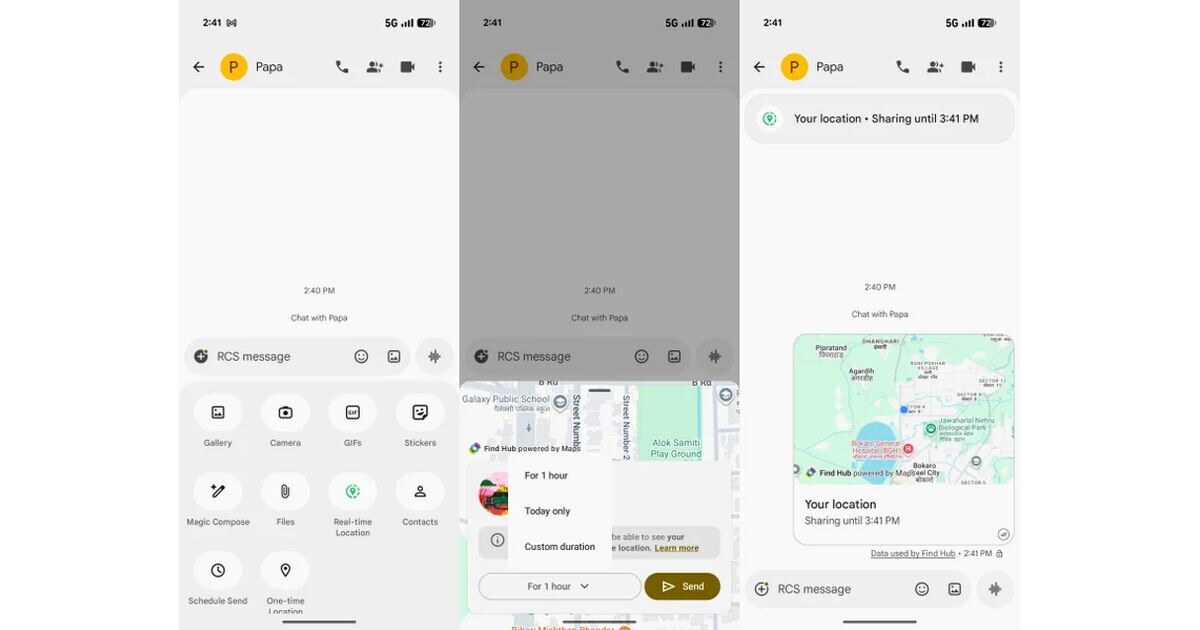 В отличие от прежней функции одноразовой отправки координат, которая фиксировала ваше место в определённый момент времени, функция живого отслеживания обновляет данные о местоположении в режиме реального времени. Это удобно, если вы хотите, например, чтобы кто-то видел ваш маршрут или точку прибытия при поездке, а не только статическую точку на карте. Ещё по теме: Чтобы поделиться динамическим местоположением, откройте чат с нужным контактом и нажмите на значок плюс возле поля ввода. В списке опций необходимо выбрать «Реальное время местоположения», а затем указать промежуток времени для доступа к вашей геолокации: от часа до целого дня или пользовательский интервал. Остаётся лишь отправить данные. ⚡Подписывайтесь на канал itzine и канал подкаста ForGeeks в Telegram! Там самые свежие новости про технологии, гаджеты и космос. В верхней части экрана появится индикатор, подсказывающий, что отслеживание активно, а также сколько осталось времени до его прекращения. Вы можете остановить тран