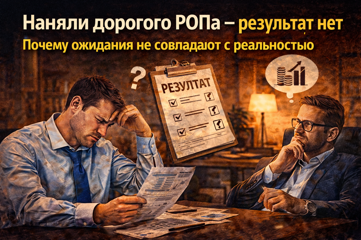 И вот тут начинается самое интересное Очень люблю этот момент. Когда РОПа искали три месяца, выбирали как квартиру — с ремонтом, опытом, кейсами и «чтобы точно вывез». Нашли. Дорогой. Уверенный. Говорит правильно. Смотрит в глаза. Продал себя идеально. Берём. Проходит пару месяцев — и начинается лёгкое недоумение. Потом раздражение. Потом классическое: «что-то не то». И дальше обычно ищут проблему в человеке. Но давайте честно. Вы же его сами выбрали. Значит, проблема чаще не в том, что он «не умеет». А в том, как вы вообще договорились на старте. Потому что чаще всего диалог выглядит так: