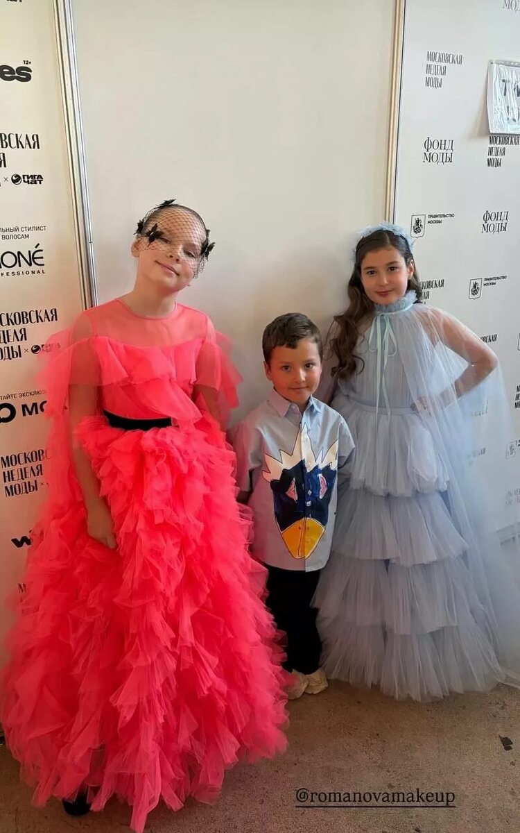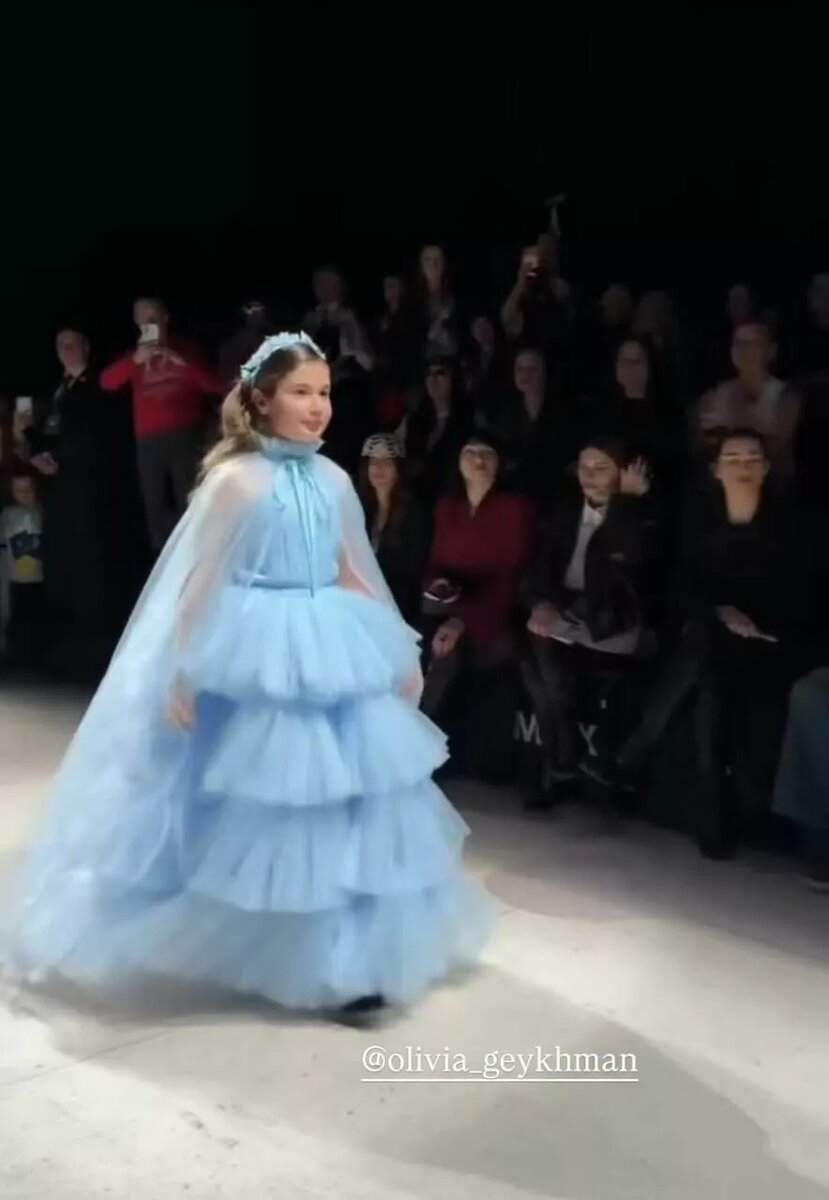 Артистка продемонстрировала, как ее старшая наследница впервые дефилирует на модном показе. hellomagrussia.ru Дочь Кети Топурии Оливия от бывшего партнера, бизнесмена Льва Гейхмана, накануне впервые прошлась по подиуму. О дебюте дочки знаменитость рассказала у себя в соцсетях, выложив кадры с показа мод с участием юных моделей. Шоу прошло в столице в рамках продолжающейся Московской недели моды. Кстати, вместе со звездной мамой поддержать модный дебют старшей сестры пришел и сын артистки Адам, которого та родила от нынешнего мужа Льва Деньгова. Дочка Николь на снимки не попала, так что неизвестно, была ли она на показе. По подиуму 10-летняя Оливия шла в многоярусном газовом платье небесно-голубого оттенка и такой же полупрозрачной накидке. На голове у девочки красовался голубой цветочный ободок в тон основному наряду. Оливия дефилировала уверенно, будто делает это не впервые. Адама Кети нарядила под стать юной манекенщице: мальчик носил светло-голубую рубашку с коротким рукавом и необы