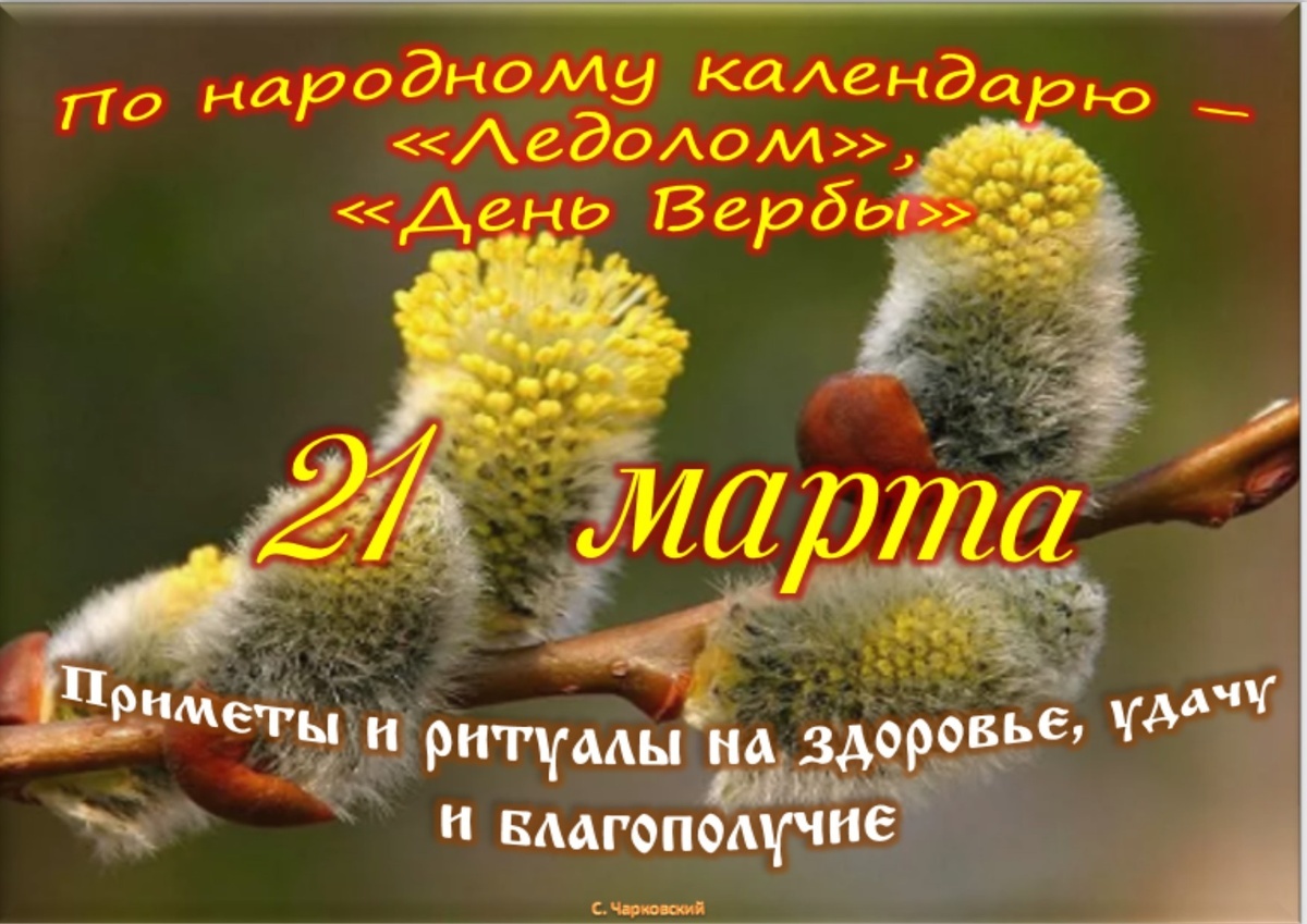 Сегодняшний день это «День суеверий». Если в эту дату отломить небольшую веточку вербы, принести ее домой и поставить в воду, то в вашей семье долго будет царить счастье, любовь и взаимопонимание. Постарайтесь в этот день не начинать серьезных дел, кроме того не следует строить грандиозные планы, так как им не суждено воплотиться в жизнь»: