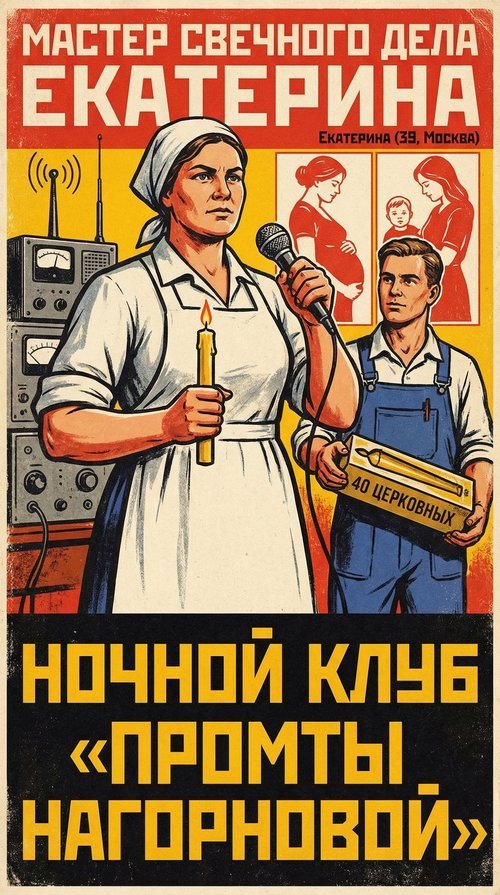 В ночном клубе «Промты» мы предлагаем вам не «клубиться». Мы предлагаем промтиться — то есть заниматься тем, что имеет смысл. Делать свечи. Говорить по душам. Читать при свете. Молчать в лесу. Строить семью.