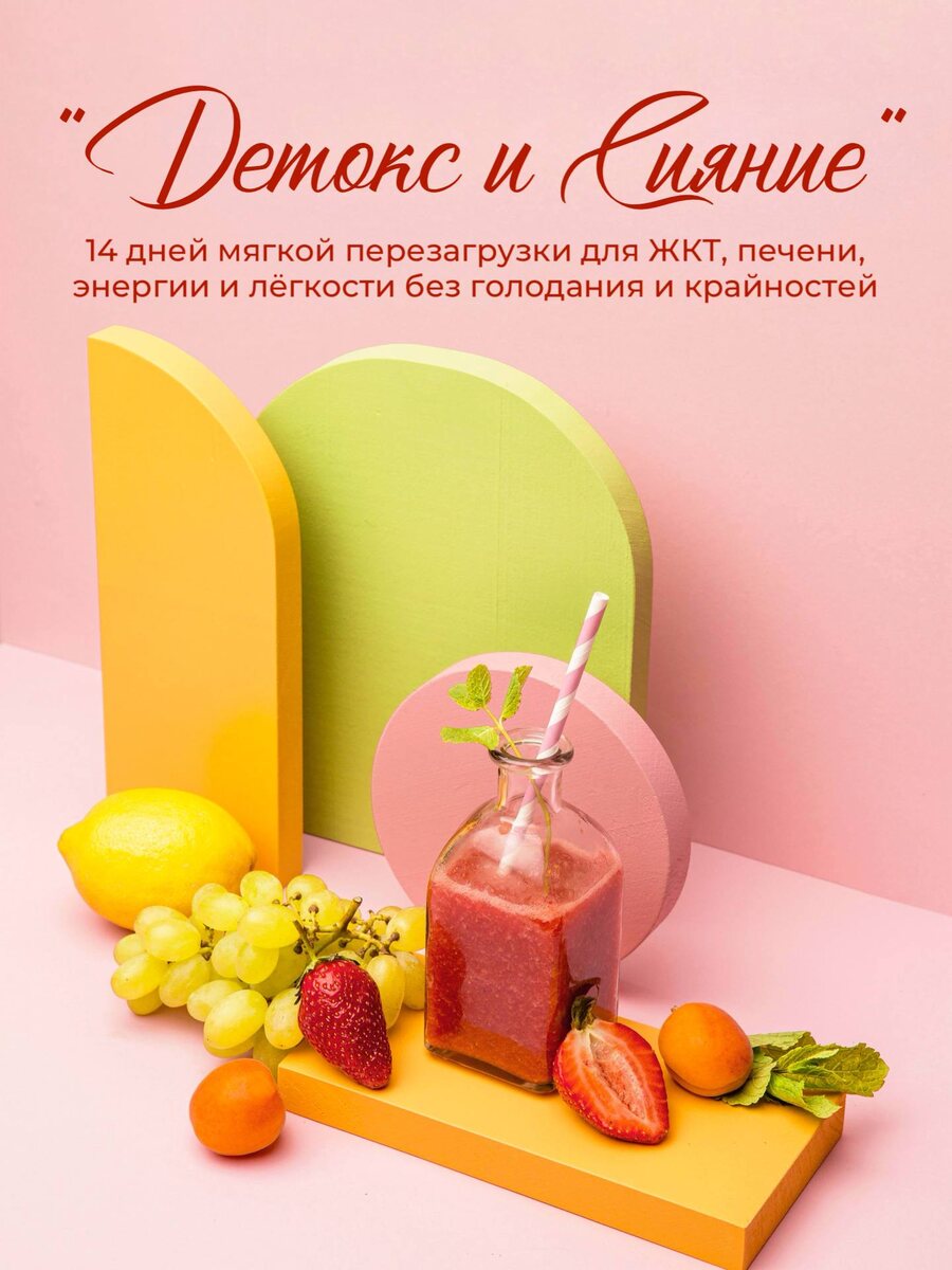 » ✨ Это мягкая 14-дневная программа с нутрициологическим подходом, которая помогает: ➡️ уменьшить вздутие и тяжесть ➡️ снизить отёчность ➡️ навести порядок в питании ➡️ снизить тягу к сладкому и хаотичным перекусам ➡️ почувствовать больше лёгкости в теле ➡️ вернуть ощущение “я снова в контакте с собой”. ✅Без соков и голодовок. ⏪️ЧТО ВАС ЖДЁТ ВНУТРИ ПРОГРАММЫ⏩️ В течение 14 дней у вас будет: ⏺️ готовое и гибкое меню-конструктор ⏺️ простые, вкусные и понятные рецепты + замены продуктов ⏺️ ежедневное сопровождение в Telegram-чате ⏺️ мини-задания ⏺️ полезные материалы ⏺️ трекер самочувствия ⏺️ поддержка и ответы на вопросы ⏺️ 2 онлайн-встречи со мной ⏪️ТАРИФЫ УЧАСТИЯ⏩️ ТАРИФ «ОСНОВА» Это полноценный формат участия для тех, кто хочет пройти программу мягко, грамотно и с отличным результатом. Что входит: 🔸 гибкое меню-конструктор с подробными рецептами на 14 дней 🔸 замены продуктов 🔸 ежедневное сопровождение в Telegram 🔸 мини-задания 🔸 полезные материалы 🔸 трекер самочувствия 🔸