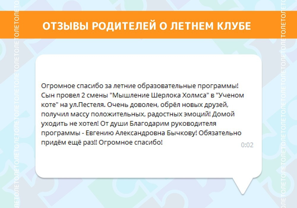 📢 Вот что говорят о летнем клубе «Учёного кота» те, кто посещал нас летом в прошлом году
