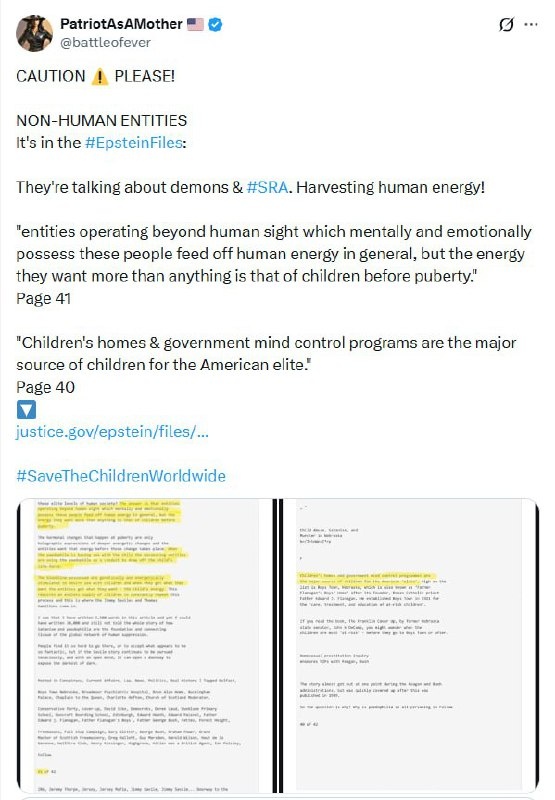 ‼️Внимание! В файлах Эпштейна упоминаются ритуалы сбора человеческой энергии для демонов