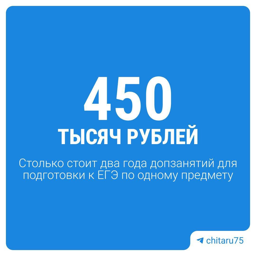 Основатель образовательного центра «Будь отличником» Анастасия Чеснок рассказала «Газета.Ru», что если заниматься с репетитором в среднем два раза в неделю, за это время набирается около 174 уроков. Средняя стоимость одного занятия сейчас — примерно 2,5 тысячи рублей. В итоге весь курс за 10 и 11 классы выходит в 435-450 тысяч рублей. 🟦 «Чита.Ру» в MAX