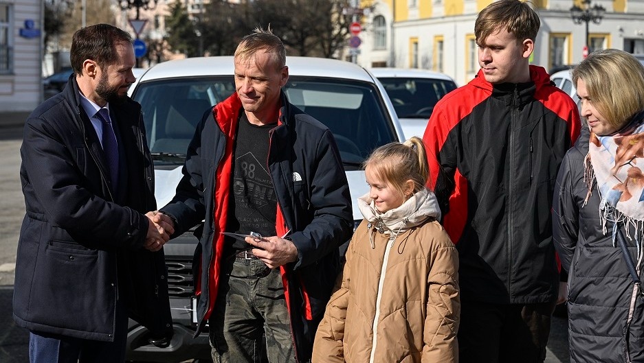 20 марта исполняющий обязанности губернатора Тверской области вручил ключи от новых автомобилей многодетным семьям, социально-реабилитационным учреждениям и ЦРБ Фировского округа. Подробности сообщает правительство Тверской области. Всего было передано пятнадцать автомобилей, из которых восемь достались многодетным семьям из Твери, Бологовского, Вышневолоцкого и Кашинского округов. "Наш регион один из первых в стране начал программу поддержки многодетных семей в приобретении автотранспорта. С 2020 года мы вручили новые машины 417 семьям, в которых воспитываются 5 и более детей. Надеемся, что эти автомобили помогут многодетным семьям больше времени проводить вместе и решать бытовые вопросы: отвозить детей в школы и детские сады, кружки и секции", – обратился к семьям Виталий Королев. Семья Никоновых воспитывает семерых детей, у каждого из них свои увлечения и занятия. Семиместный автомобиль позволит развозить детей на занятия и поможет главе семейства выполнять свои задачи – он уже мног