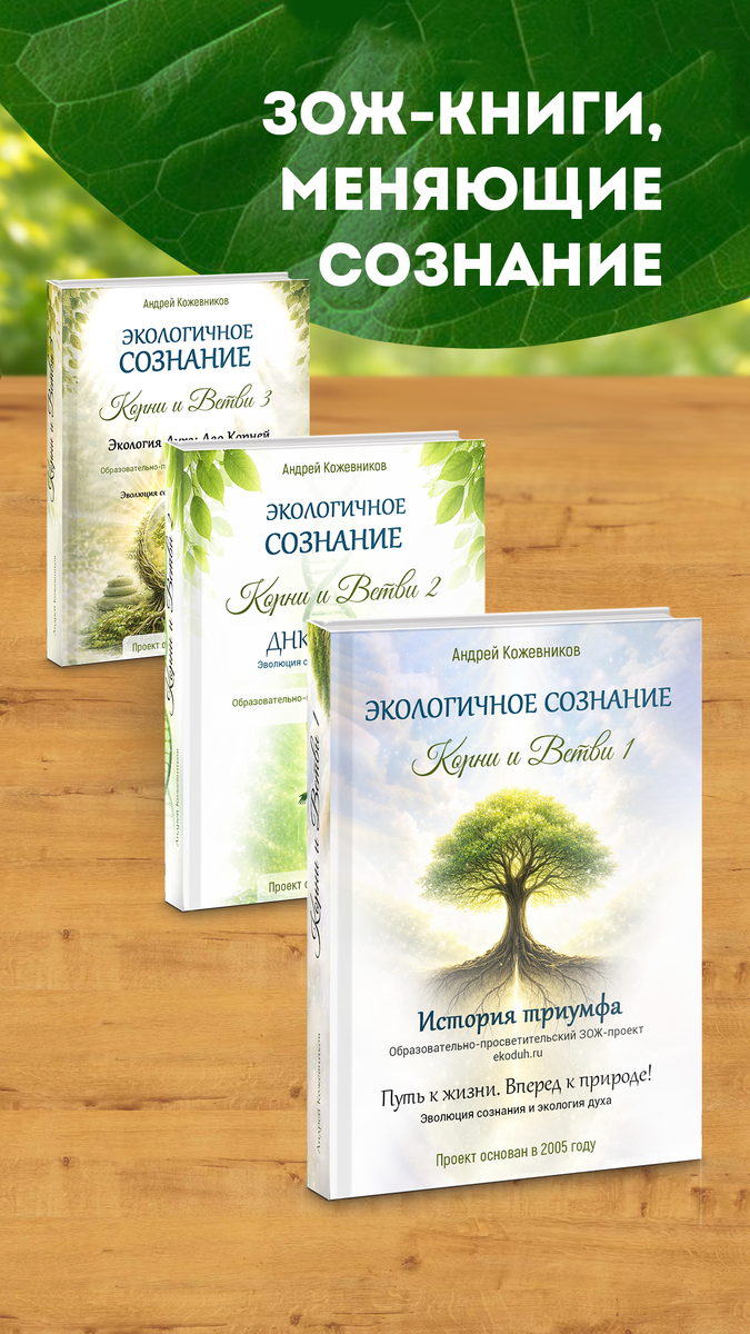 Книжный цикл Андрея Кожевникова “Экологичное Сознание. Корни и Ветви” — исследование этой архитектуры через личный и системный опыт.