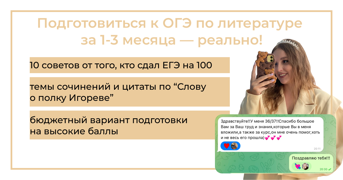 Всем привет! Меня зовут Алина, я репетитор для гуманитариев. В этой статье я дам 10 рекомендаций, как подготовиться на 4-5 за оставшееся время. Вы совершенно точно не успеете. Гораздо важнее для вас сейчас изучить ключевые вопросы по произведениям и найти на них ответы с примерами из текста. Например, вот ключевые темы для сочинений, тезисы и примеры к ним по произведению "Слово о полку Игореве". Подобные материалы я готовлю для своих учеников, чтобы им было удобнее готовиться. Для первой части они вам не нужны, а во второй части вы можете выбрать тему не по лирике. Готовьтесь только к тому, чтобы уметь анализировать стихотворения. Для этого смотрите разборы стихотворений. Они пригодятся вам во второй части, которая занимает треть всех баллов экзамена. Самые популярные термины, которые попадаются почти в каждом произведении, это Сейчас вам важно писать как можно больше текстов по разным произведениям. Во-первых, так вы научитесь лучше писать сочинение, во-вторых, сможете запомнить боль