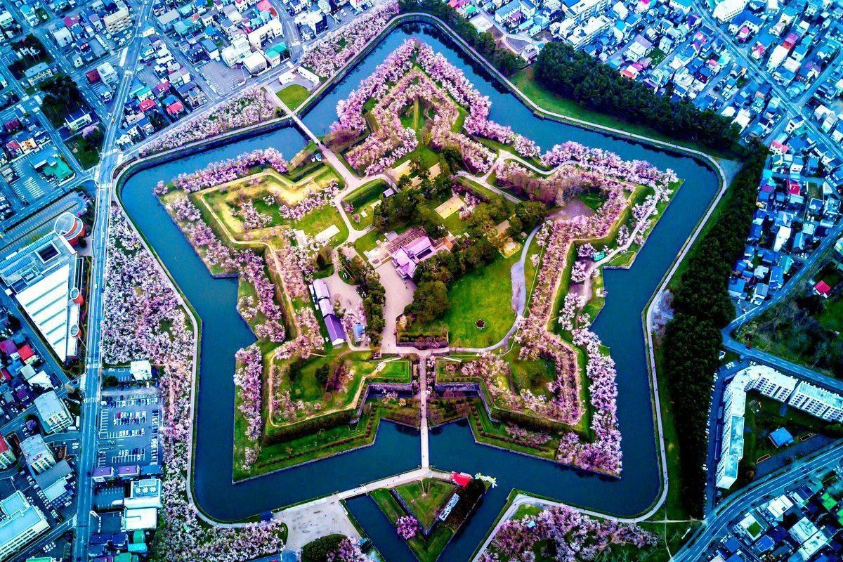 ✅Горёкаку - это форт в форме звезды с цветущей сакурой, который был построен для защиты города от врагов. Это место популярно среди туристов в Хакодате, Япония.