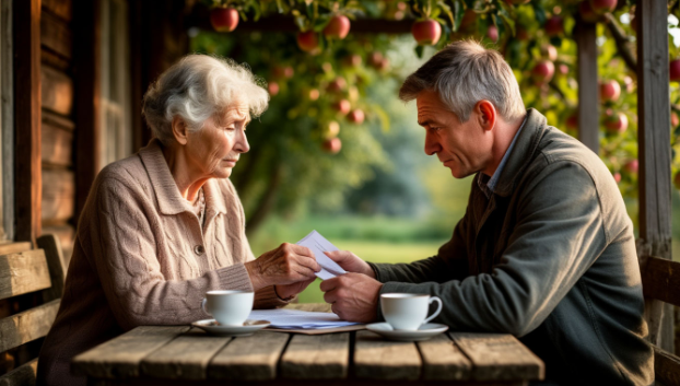 Она впустила меня нехотя. На веранде пахло яблоками, мятой и старой древесиной. Тёща села на свой плетёный стул, сложила руки на груди. Я сел напротив, достал из папки документы.