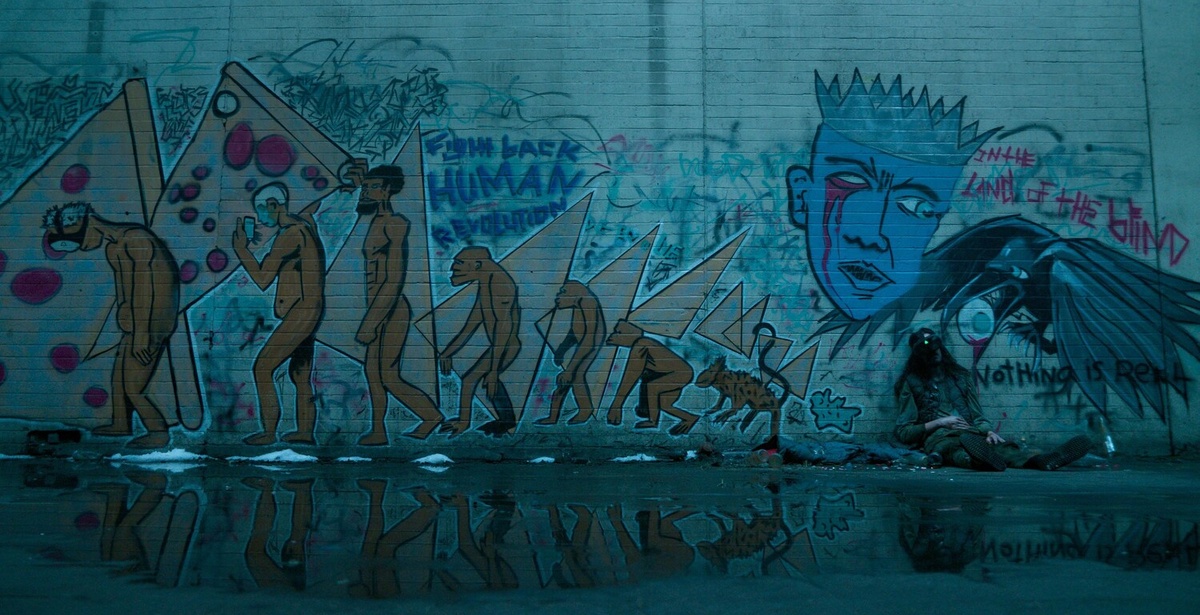 Параллельно с приключениями героев в реальности мы увидим предыстории нескольких героев этой команды. И тут создатели "Удачи, веселья, не сдохни" безусловно насладились своим старческим брюзжанием и морализаторством - тотальной критике подверглось молодое поколение. В отличие от более взрослых людей, школьников и детей продемонстрировали как неспособных воспринимать хоть что-либо, кроме смартфонов и бесконечной ленты социальных сетей. При этом они почти лишены эмоций и постоянно убивают друг друга в школьных перестрелках. А родители создают искусственные версии своих детей, которые между делом постоянно рекламируют какие-то товары...