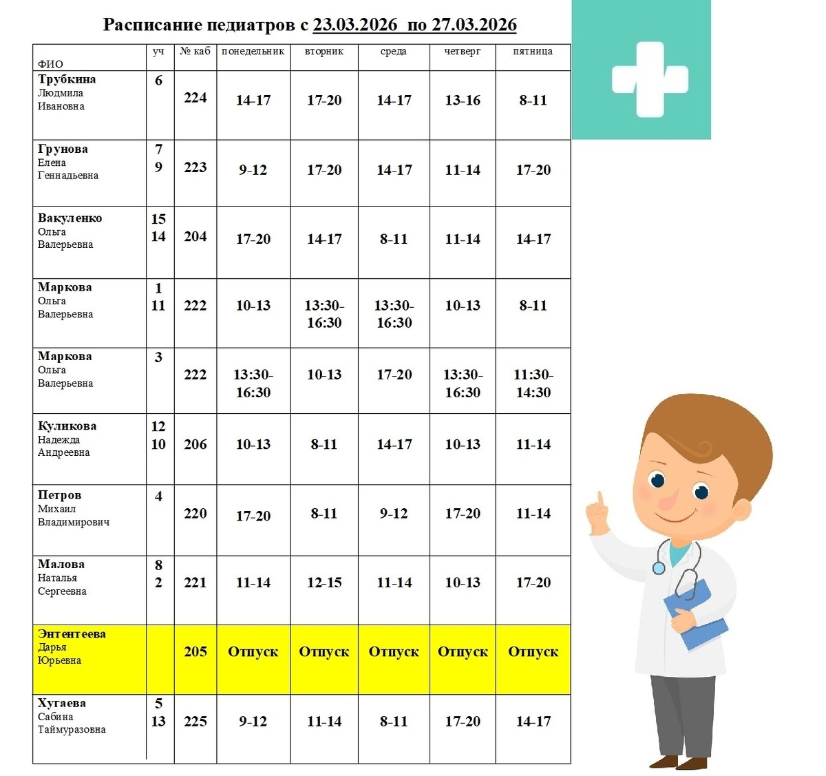 Информация из детской поликлиники №73.