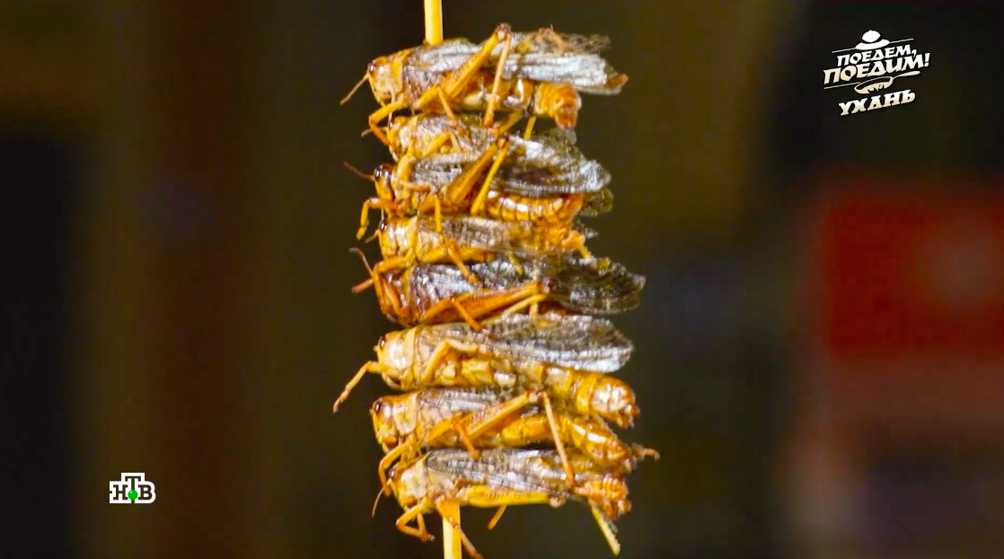 Есть здесь и знаменитый отвар на основе груши. Китайцы лечат им больное горло. Не обошлось и без гастрономического экстрима — жареных кузнечиков. Правда, деликатес нашего ведущего не впечатлил: напоминает креветки в панцире с маленьким количеством мяса.