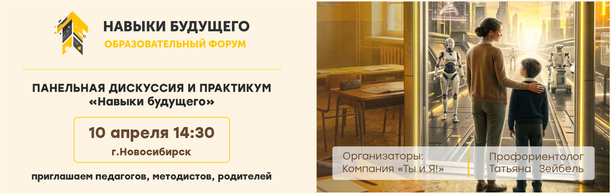 Мир меняется стремительнее школьных программ, и вопрос «чему учить сегодня, чтобы ребенок был успешен завтра» становится всё острее. Мы — сообщество "Ты и Я" — выступаем организаторами встречи, где этот вопрос разберем по полочкам. Приглашаем вас в Новосибирске на панельную дискуссию Мы собираем за одним столом 50 человек — управленцев, педагогов и родителей, — чтобы вместе найти точки опоры в меняющемся мире. Что вас ждет в программе: 13:00–13:30 | СБОР И РЕГИСТРАЦИЯ участников
