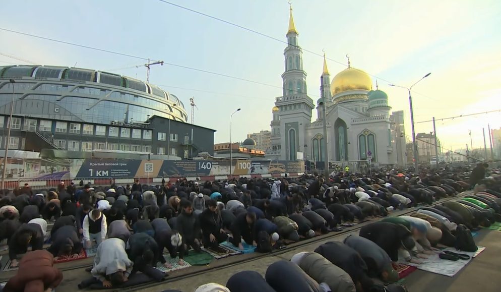 Тысячи мусульман собрались у Московской соборной мечети в Москве в пятницу, чтобы отметить один из главных исламских праздников — Ураза-байрам и принять участие в молитве. Верующие выстраивались в ряды и совершали намаз. Ураза-байрам является вторым по важности днем в мусульманском мире. Это праздник разговения, который символизирует завершение поста в священном для мусульман месяце Рамадан.