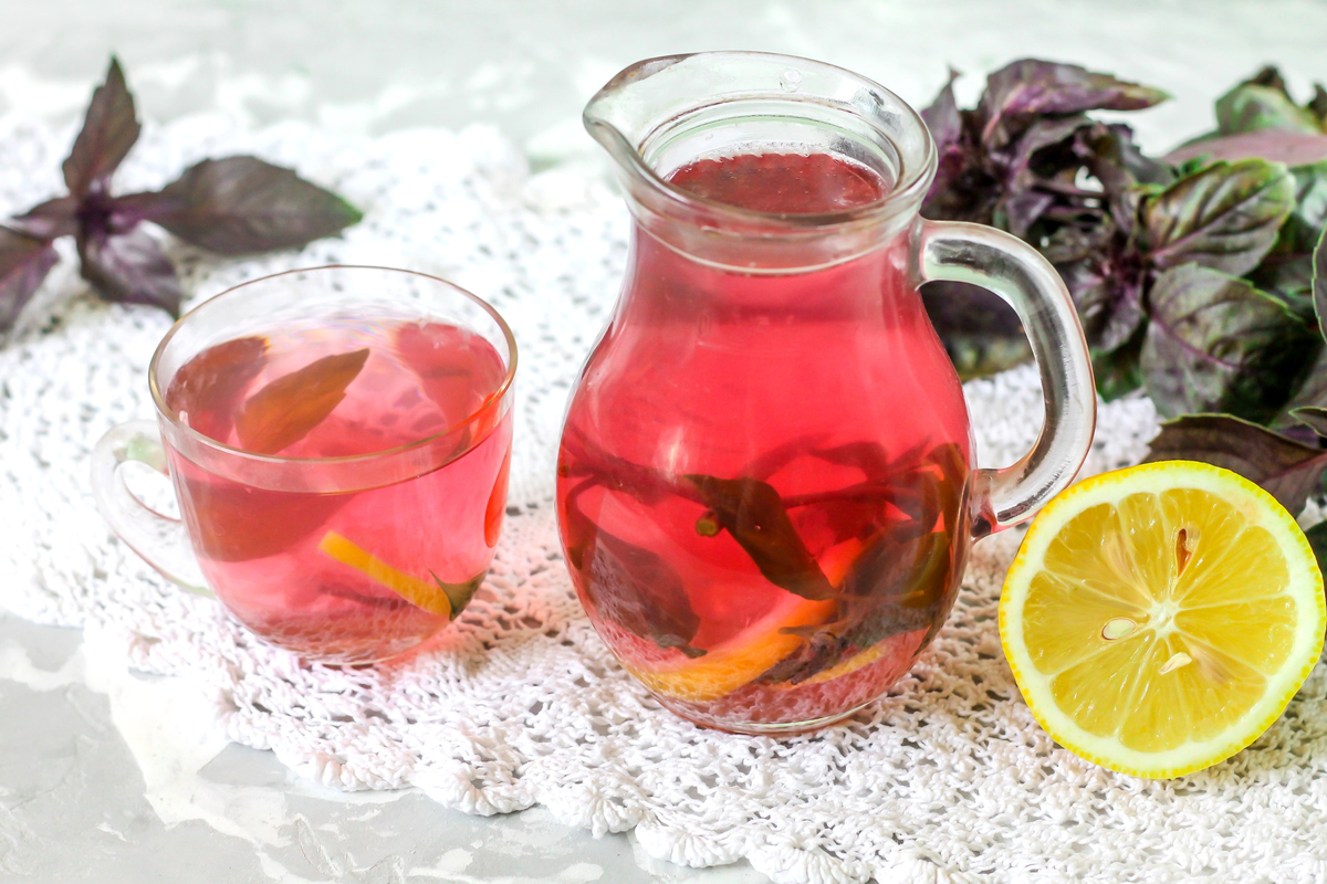 Напиток из базилика, лимона и мяты — прекрасный выбор для тех, кто хочет насладиться ярким вкусом и ароматом, независимо от сезона. Благодаря сочетанию ингредиентов, этот напиток приобретает пикантную пряность. Идеально для праздничного стола, если вы не пьете алкоголь. Хорошо моем базилик и нарезаем․ из лимона НЕМНОГО выжимаем сок, а остальную часть 1/3 нарезаем слайсами. Корочки могут горчить!!! кипяток можно заменить на свежесваренный яблочный компот Заливаем базилик кипятком (1,5 л.) и оставляем настаиваться от 10 минут․ Чем больше напиток настоится, тем ярче станет его вкус и цвет. + несколько бутончиков гвоздики․ + слайсы лимона + сахар и перемешиваем до полного его растворения․ должен получиться напиток красивого фиолетового цвета․ Процеживаем отвар․ + лимонный сок Его можно употреблять как тёплым, так и охлаждённым. и подавать с кубиками льда. 100 г блюда 33.3 ккал белки 0.6 г жиры 0.2 г углеводы 8.2 г
