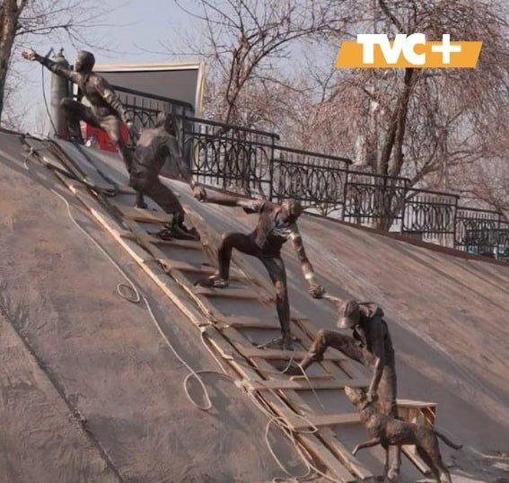 Скульптура на русле Большой Алматинки воссоздает ситуацию из 2016 года, когда прохожие выстроились в живую цепь, чтобы спасти собаку и её хозяина, которые оказались в воде. Спустя десять лет эта история получила продолжение — теперь она навсегда запечатлена в металле как напоминание о взаимопомощи и готовности людей прийти на помощь друг другу.
