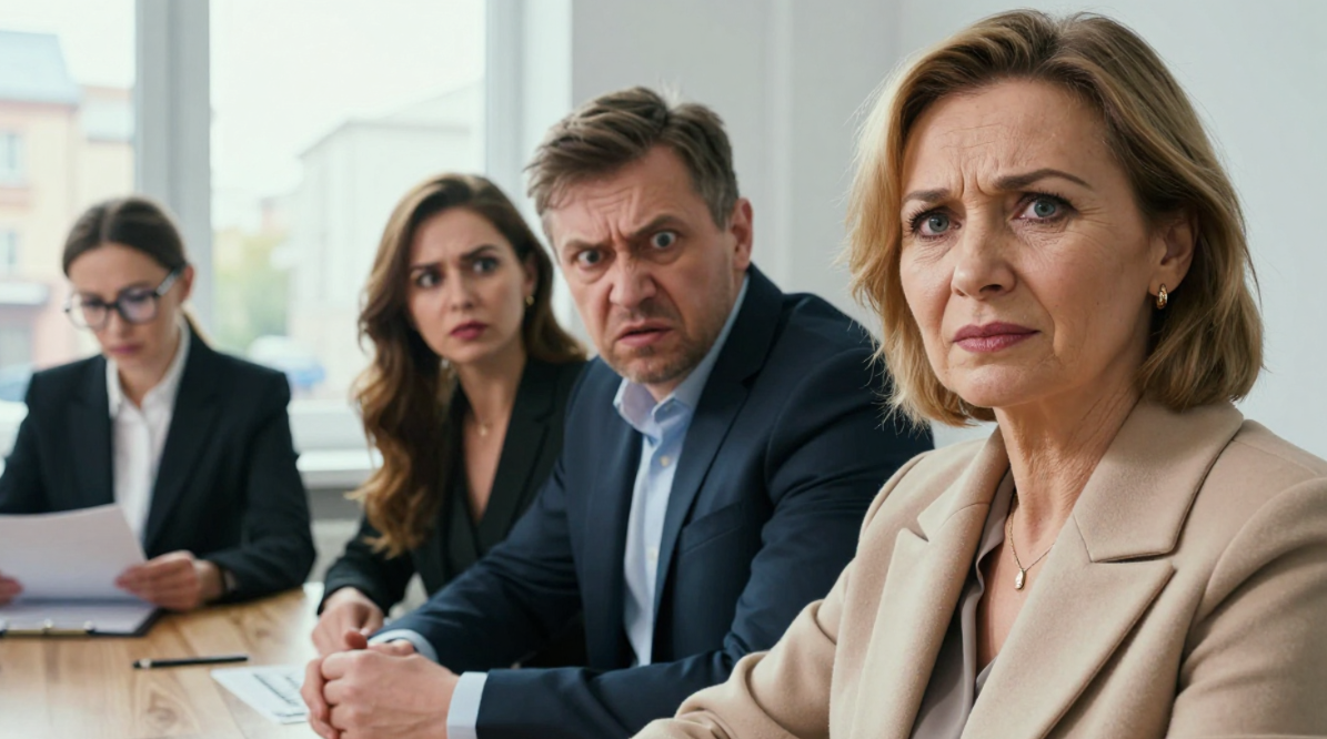 Галина вошла спокойно. На ней было простое, но элегантное бежевое пальто, спина прямая, взгляд уверенный. Никакой забитой брошенной жены. Олег скользнул по ней удивленным взглядом и нервно кашлянул.