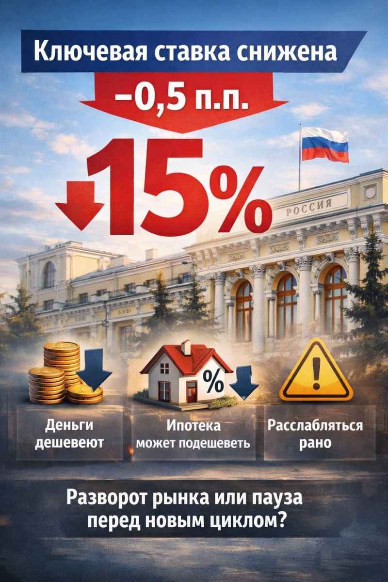 п. Теперь она 15%. Решение принято сегодня, 20 марта, на заседании Совета директоров Банка России. Регулятор отмечает, что инфляция начинает замедляться, а экономика постепенно возвращается к более сбалансированному росту. Но расслабляться рано — политика всё ещё остаётся жёсткой, и дальнейшие шаги будут зависеть от динамики цен и внешних факторов. Что это значит: — деньги постепенно дешевеют — давление на ипотечные ставки может снижаться — но быстрого «обвала ставок» ждать не стоит Вопрос: Как думаете, это уже разворот рынка или просто пауза перед новым циклом?