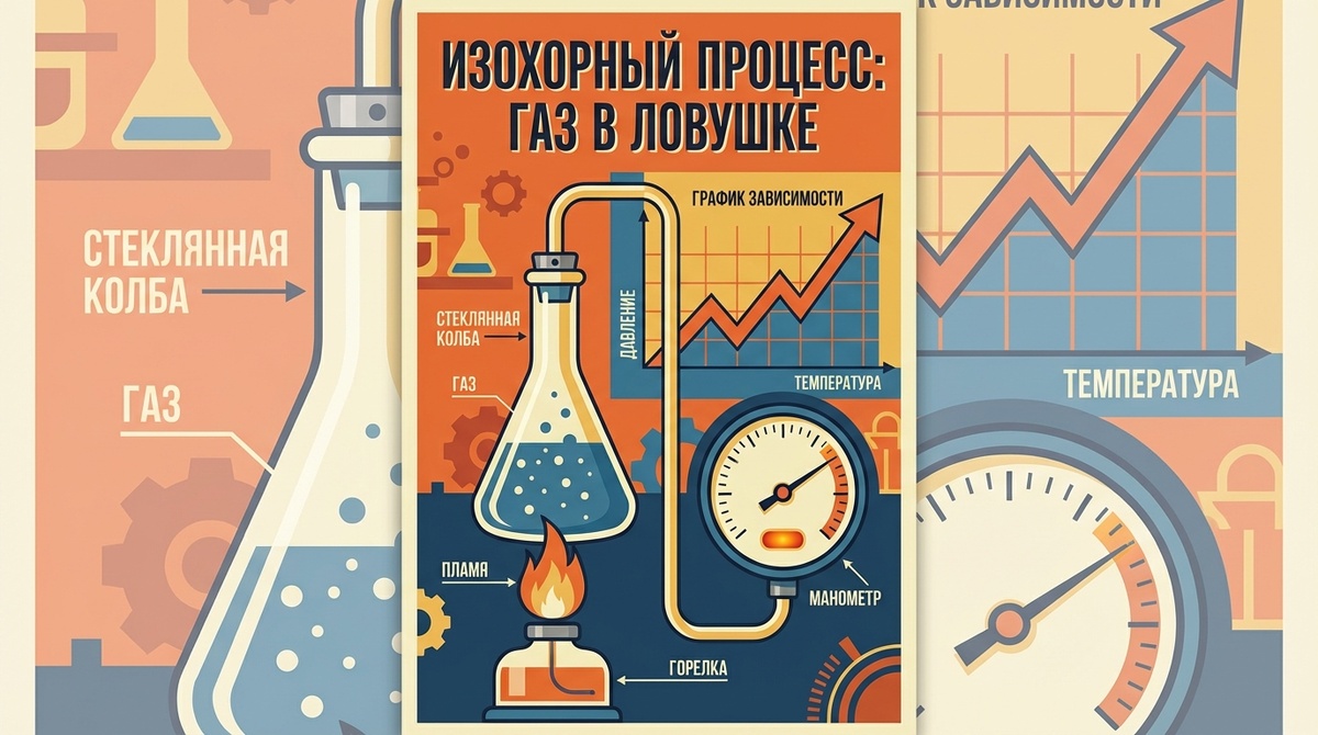 Я думал, что изохора — это просто прямая на графике. Пришёл на лабу, взял термометр, запаял шприц... и понял, что там куда интереснее, чем в учебнике. Лабораторная работа по изучению изохорного процесса — одна из тех, которые с первого взгляда кажутся скучными. Нагреваешь газ, давление растёт. Ну и что. А потом начинаешь считать — и внезапно всё сходится с формулой. Вот тут и накрывает. Изохорный процесс — это когда объём газа не меняется, а давление и температура делают что хотят. V = const, вот и всё условие. Технически реализуется просто: газ закрыт в жёстком сосуде, у которого стенки не деформируются. В лабораторной работе по изучению изохорного процесса обычно используют колбу с манометром или запаянный шприц с фиксатором поршня. Нагреваешь — давление растёт. Охлаждаешь — падает. И это не просто «больше/меньше» — зависимость строго линейная: p/T = const. Это закон Шарля. Хотя в российских учебниках его иногда называют законом Гей-Люссака для изохорного процесса — путаница истори
