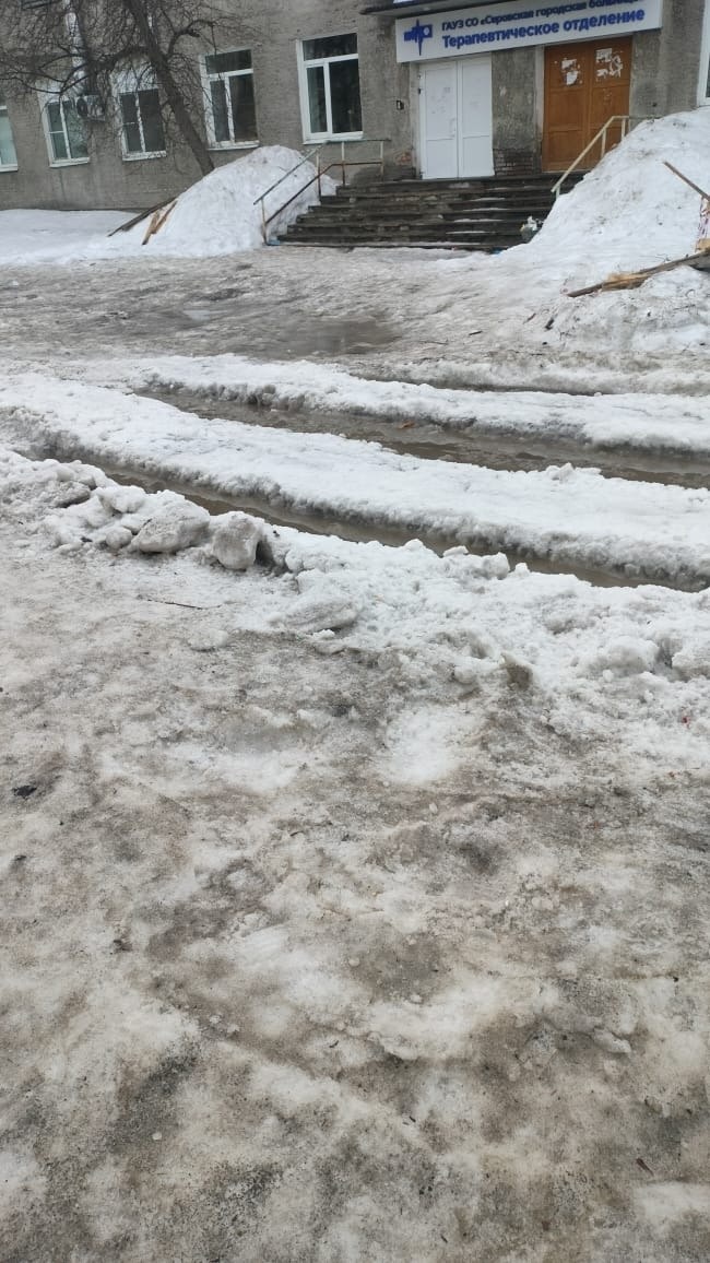 : [Кузьмина 38, 3-я больница и Кузьмина 44] За всё время зимы проезд у третьей больницы не был почищен, огромные колеи постоянно. С наступлением подтайки ситуация стала ужасной! Сейчас машины бросают прямо на проезжей части, сужая ее еще больше, проехать между двумя улицами проблематично. Несколько машин уже застревало на том месте. ❗ЖИТЕЛИ ДОМОВ не могут проехать во двор, везде каша из снега и воды. Прошу почистить данный проезд между улицей Народная и Кузьмина, а также расчистить начало заезда во двор. ‼️