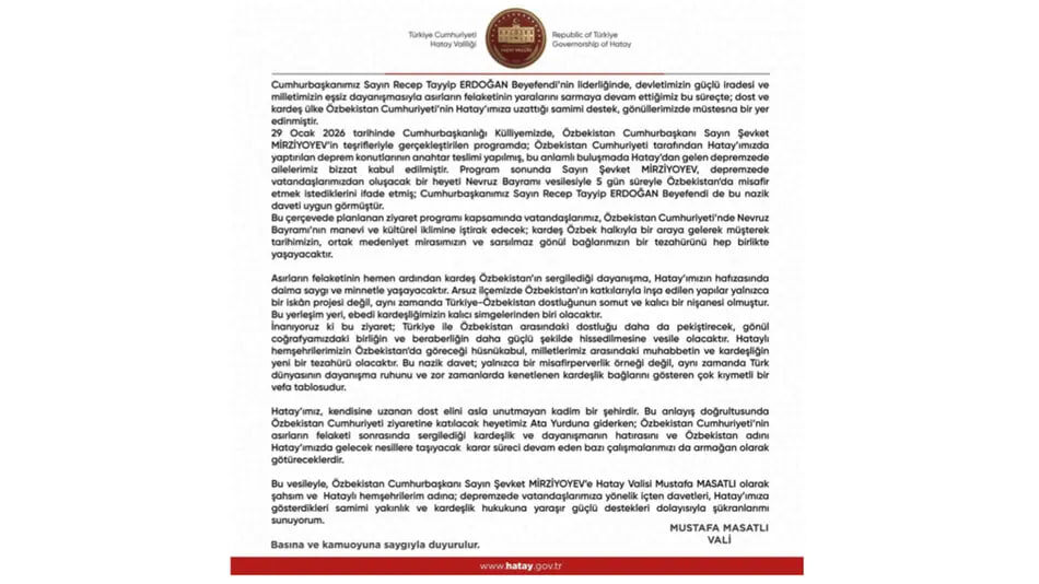 Navro‘z kunlari hataylik Turkiya fuqarolari delegatsiyasi O‘zbekistonga tashrif buyuradi