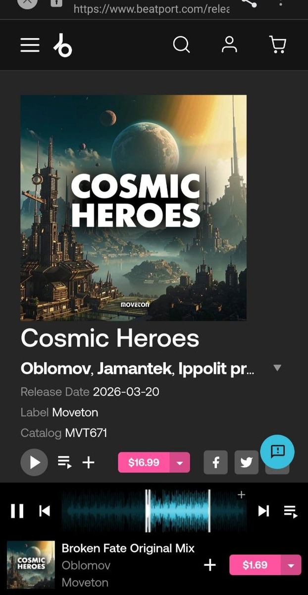 Наконец-то вышел долгожданный сборник "Космические герои" на лейбле MOVETON https://www.beatport.com/release/cosmic-heroes/6402630