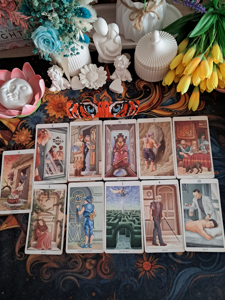 10 Мечей в отношениях — это карта тотального завершения. Для Весов, которые долго балансируют и не умеют ставить точку, эта карта означает: то, что умерло, больше не воскреснет. И это освобождает место для 9 Кубков — чистого удовлетворения без оглядки на прошлое.