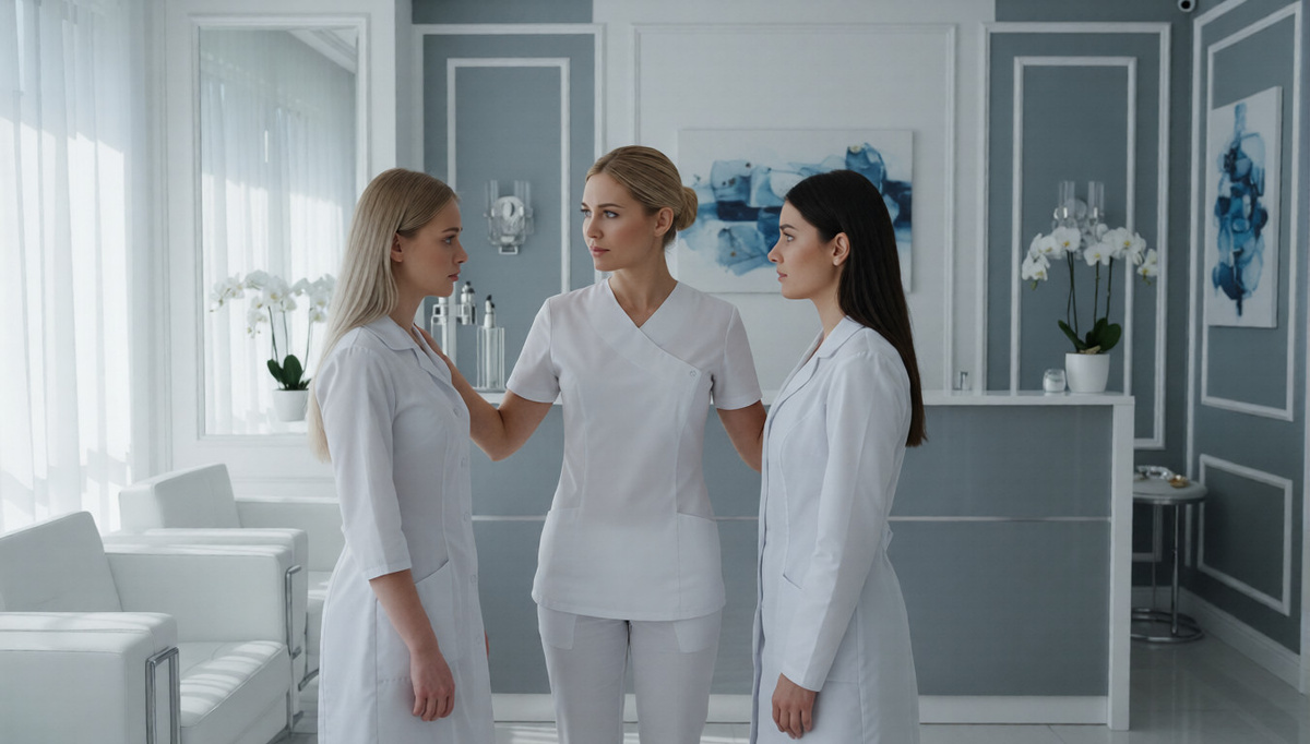 Администратор в косметологической клинике — человек, который видит все. И не только на ресепшене. Он слышит разговоры в коридорах, замечает, как коллеги переглядываются, и первым чувствует, когда атмосфера в коллективе накаляется. Сплетни, скрытая конкуренция, перетягивание пациентов — это не просто неприятные мелочи. Для администратора это ежедневная головная боль, которая мешает работать и портит отношения с клиентами. Внешне все спокойно, но тревожные звоночки появляются регулярно. Один специалист при пациенте позволяет себе комментарий о методах коллеги: «Она, конечно, старается, но я бы сделала иначе». Вроде безобидно, но пациент слышит и запоминает. Или администратор на ресепшене ловит себя на мысли, что его коллега переманивает клиентов, советуя записываться к «своему» врачу, а не к тому, кто реально свободен. Администратор чувствует это напряжение каждый день. И клиенты его тоже чувствуют. Они приходят за красотой и расслаблением, а попадают в среду, где искрит. Когда два врача