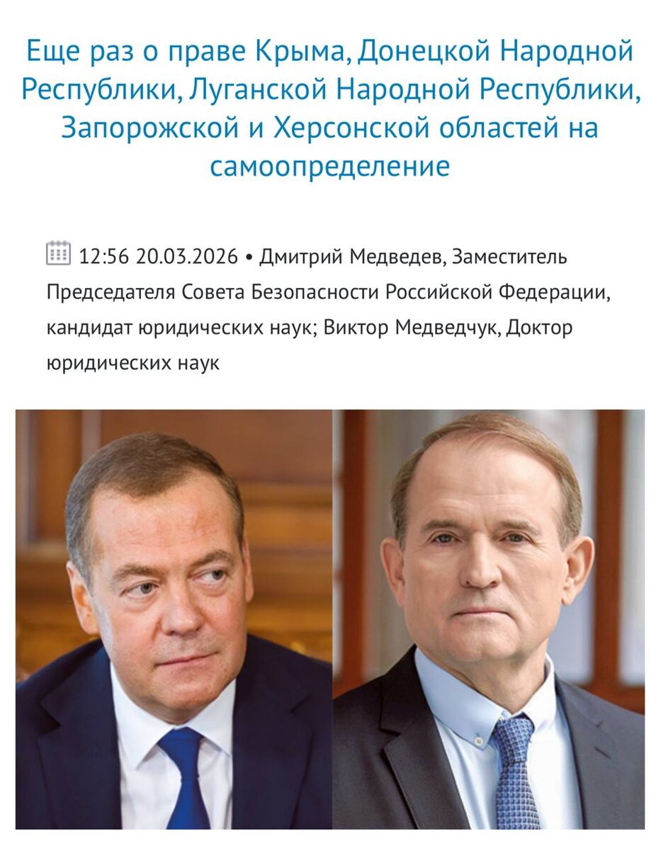 ». Называется он «Еще раз о праве Крыма, Донецкой Народной Республики, Луганской Народной Республики, Запорожской и Херсонской областей на самоопределение». Авторы утверждают, что присоединение этих территорий — не только политическое решение, но и проявление «русского цивилизационного дискурса». По их мнению, ДНР, ЛНР, Крым, а также Запорожская и Херсонская области реализуют право на самоопределение в рамках единого историко-культурного пространства с Россией. Текст в целом подает это как часть более широкой идеологической борьбы: Россия противопоставляется Западу, а «русский дискурс» — как альтернативная система ценностей, которая должна защищать суверенитет и формировать будущее страны. Авторы утверждают, что борьба сегодня идет не только военная, но и идеологическая/языковая: через нарративы, смыслы и культурные коды. Поэтому России нужно укреплять собственный дискурс, очищать его от «чужих» понятий и выстраивать свою систему ценностей, чтобы сохранить суверенитет и предложить мир