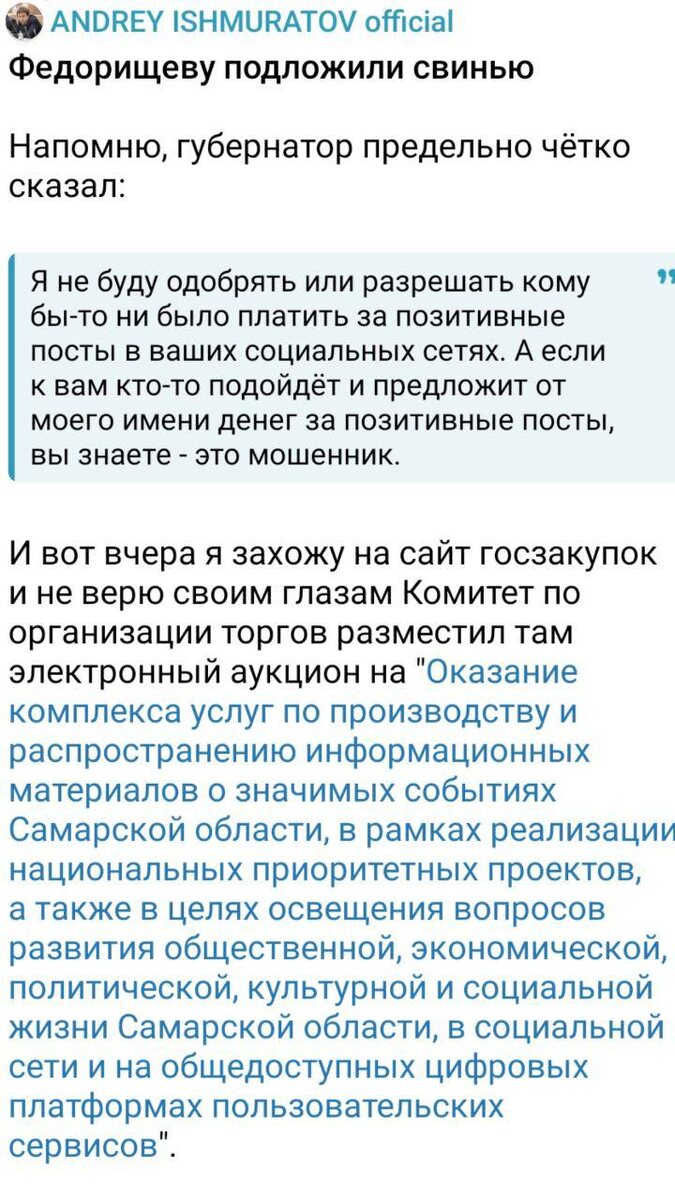 При чем тут блогеры? Речь идёт о размещении новостей в пабликах ал-я «Подслушано Самара», «ЧП Самара» и тд, а не об авторских блогах И да. Не согласна с Андреем в части, что на таких постах должна быть пометка «социальная реклама», так как это банальные информационные новости, предназначенные для сообщения аудитории о происходящих событиях или текущей деятельности того же Правительства СО. «Надо ли это аудитории?», — нас, подписчиков и потребителей контента, как бы и не спрашивают) Это могло бы быть социальной рекламой, если бы информация была бы направлена на достижение благотворительных и иных общественно полезных целей, а так это обычные новости. А, значит, не реклама