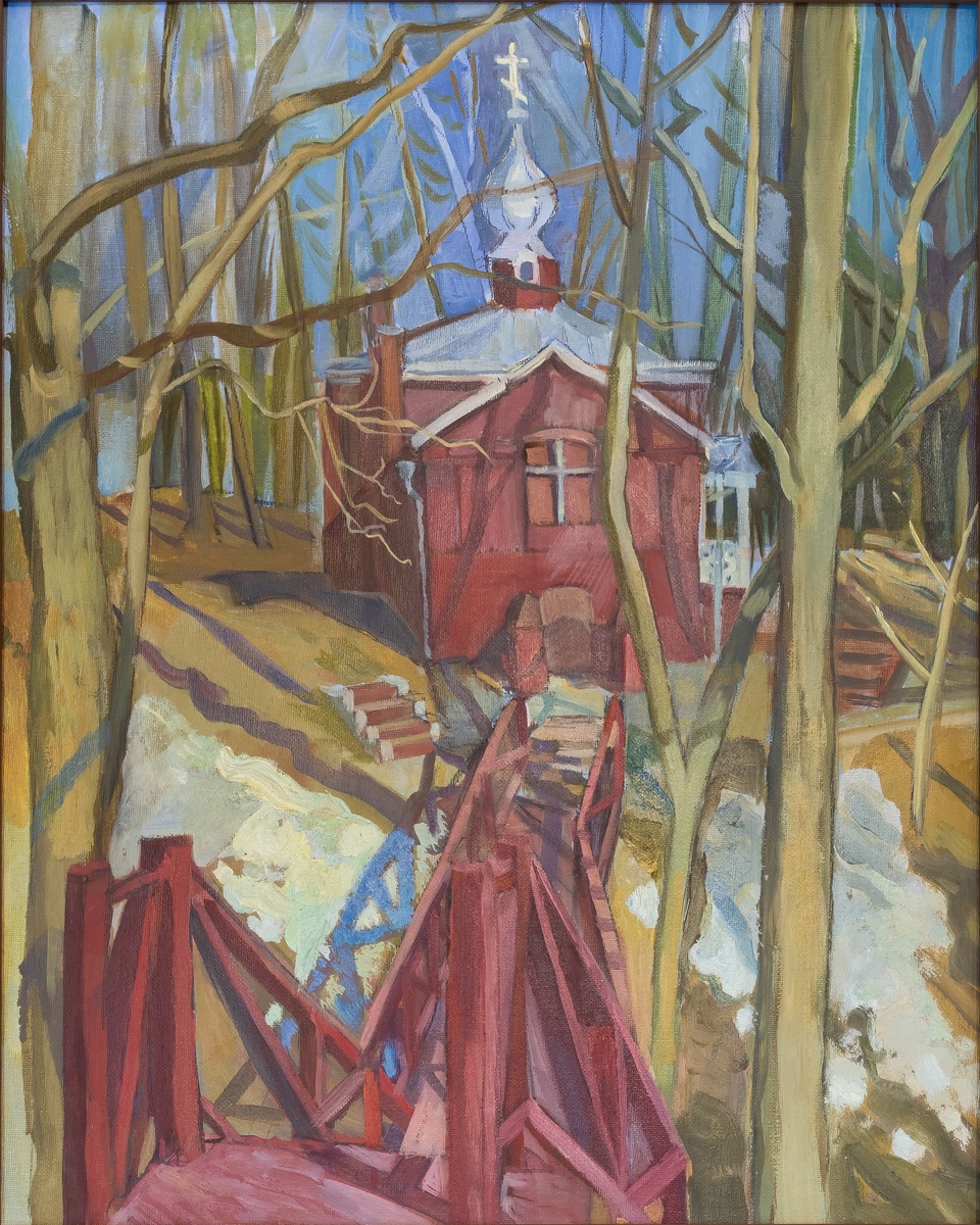 🔳 Ольга Комарова, «Весна в Муранове. Спасская церковь», 2019. Холст на картоне, масло. #поэзиямурановскихпейзажей