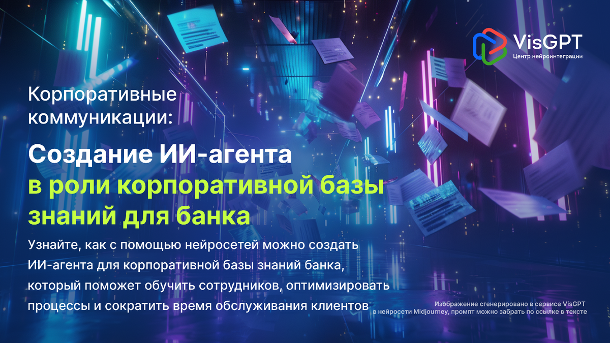 Обеспечение быстрого доступа к информации, обучение сотрудников и обработка клиентских запросов — важные задачи банков. Внедрение ИИ-агента помогает ускорить внутренние процессы, повысить качество обслуживания и уменьшить нагрузку на персонал. Скорость и точность предоставляемых данных сегодня особенно актуальны для банков. Ежедневно специалисты взаимодействуют с большим количеством вопросов, требующих обращения к различным инструкциям и нормативам. Поиск нужной информации часто требует времени, уменьшает эффективность работы и повышает вероятность ошибок. Использование ИИ-агента упрощает доступ к корпоративной базе знаний, позволяя получать лаконичные и точные ответы из любых внутренних документов мгновенно. Ниже подробно разобрано, как организовать работу ассистента на базе платформы VisGPT: пошаговая настройка, формирование базы знаний и возможности ИИ-решения для бизнеса. В банках накапливаются большие массивы внутренней документации – от инструкций по продуктам до регламентов по о