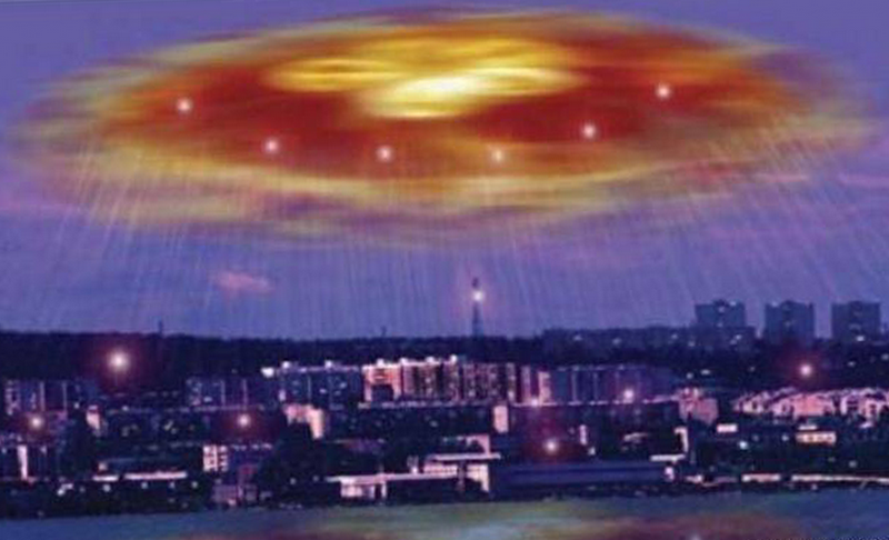 Её лучи расходятся как щупальца гигантской медузы. И в этот момент — тысячи людей выходят на улицы. Потому что никто не может отвести глаз от этого зрелища. Никто не понимает, что происходит. Но все чувствуют: это — не просто свет. Это — послание.
