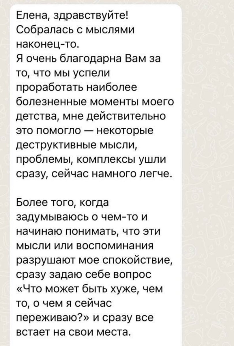 Есть один вопрос, который входит в ресурсную программу в подходе Рилив. Но, если без относительно ресурсности, а про тревожное состояние этот вопрос можно брать как инструмент самопомощи. Придумай что -то хуже, чем… и называешь проблему своей тревожности. Например, придумай что -то хуже, чем остаться без денег… По-разному клиенты реагируют на такой заход. «Ну я не знаю», или «смерть близких», или «неизлечимая болезнь» И это все так. Важно выгружать все, что приходит в голову, а потом вспомнить, что основной глагол здесь – придумай. Значит – фантазируй. И это работает. Клиентка в своем отзыве написала – «когда сталкиваюсь с какими-либо трудностями в жизни, сразу вспоминаю ваш вопрос – придумай что-то хуже, чем то, что со мной сейчас, минут 10 попридумываю и норм» А сейчас психологические разумности, почему это работает, читать дальше только тем, кто хочет разобраться как и почему это работает. Когда клиент боится какой-то ситуации, психика строит внутренний “потолок ужаса”: «Это самое с