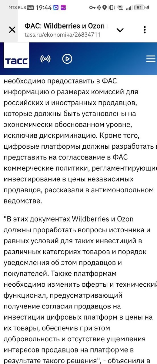 Там ФАС отработал по ВБ и Озон. Не совсем по последним изменениям, но все таки.