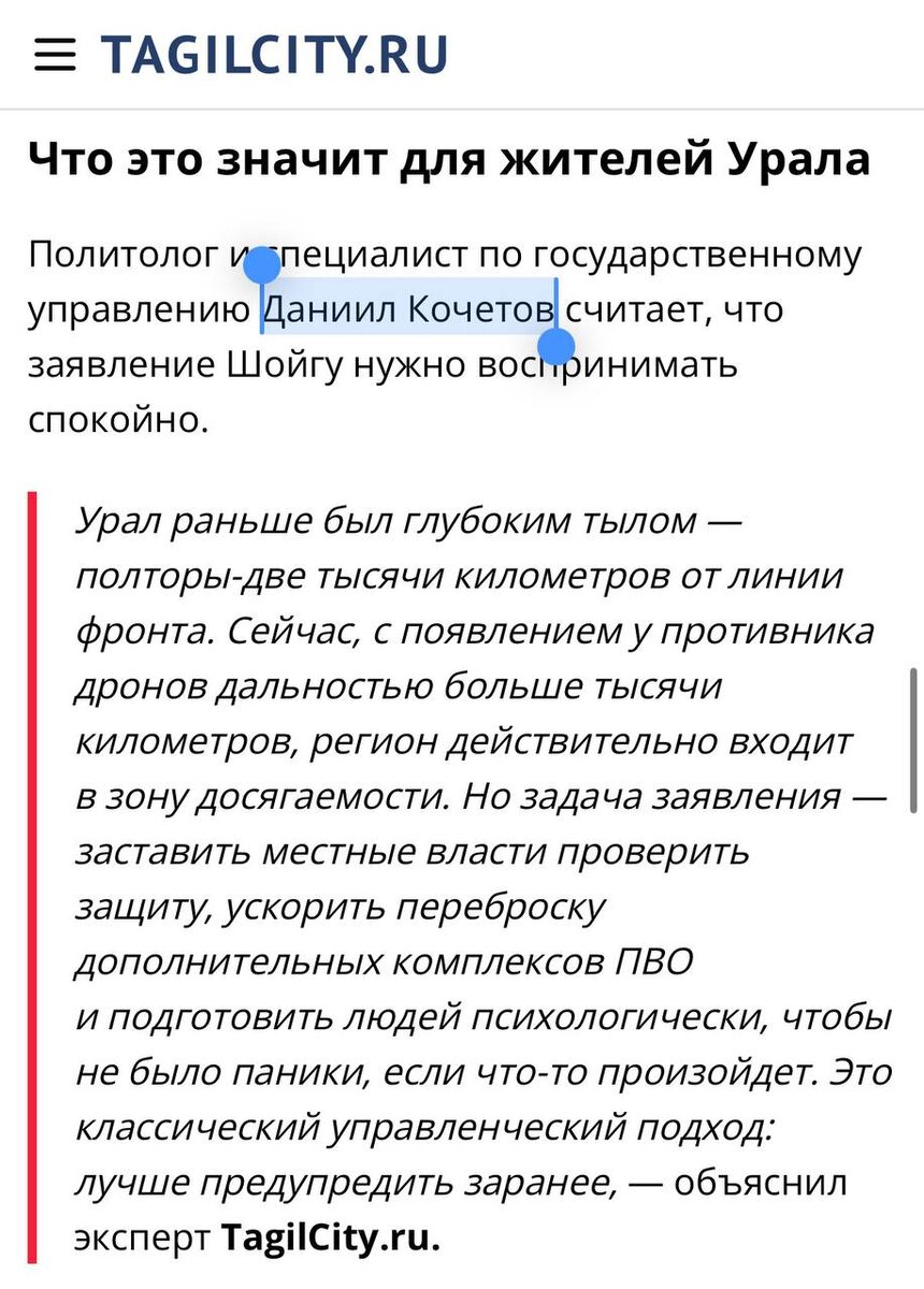 📰 Друзья, мой новый комментарий вышел в материале TagilCity по поводу громкого заявления Шойгу об угрозе Уралу