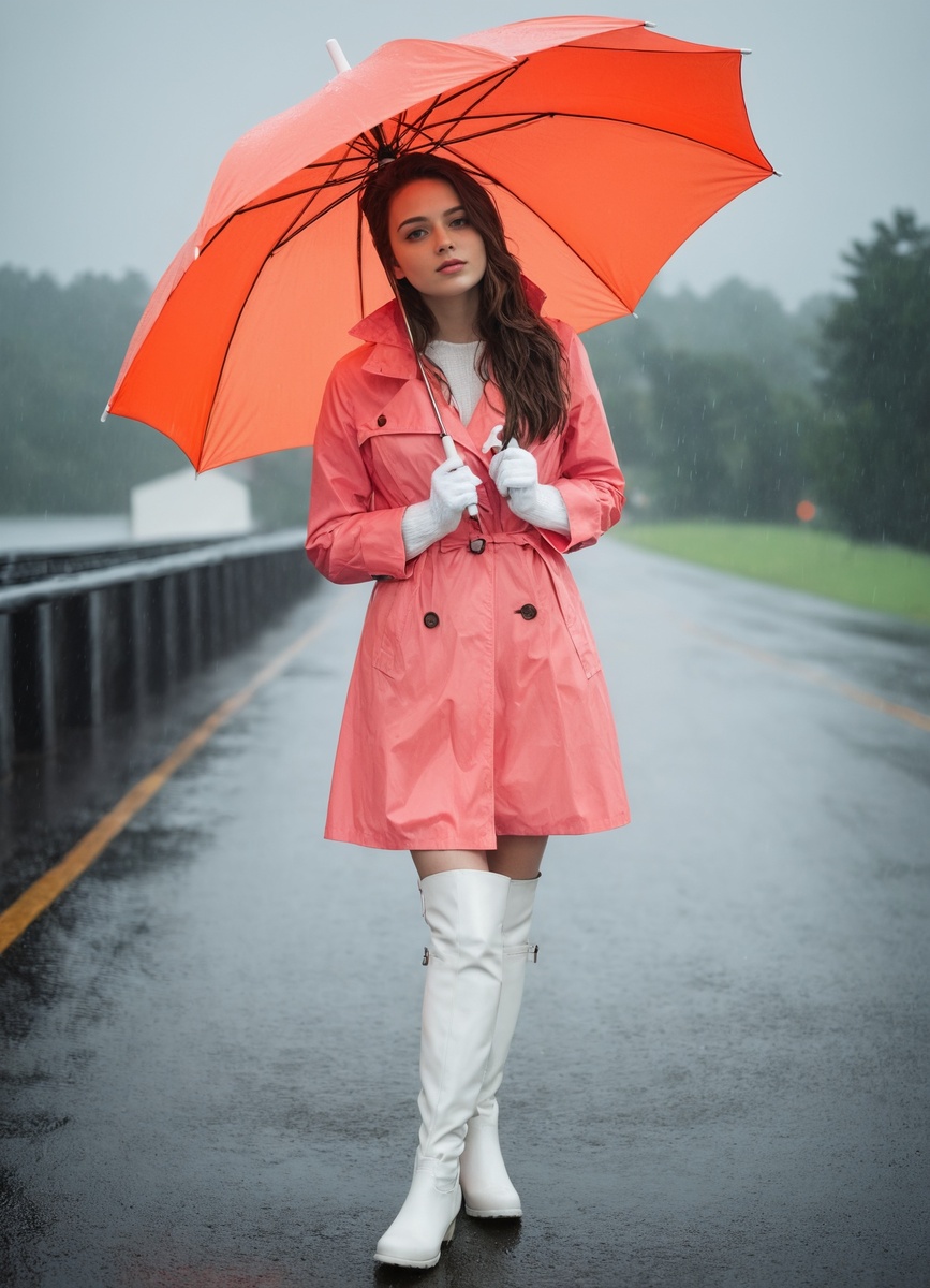 Осенью и зимой стоит обратить внимание на более глубокие и теплые цвета. Бордовые или темно-зеленые зонты в сочетании с черными или коричневыми сапогами создадут уютный и стильный лук. Также стоит учитывать фактуру материалов: шершавая текстура зонта может добавить интересный акцент к гладким сапогам и наоборот.