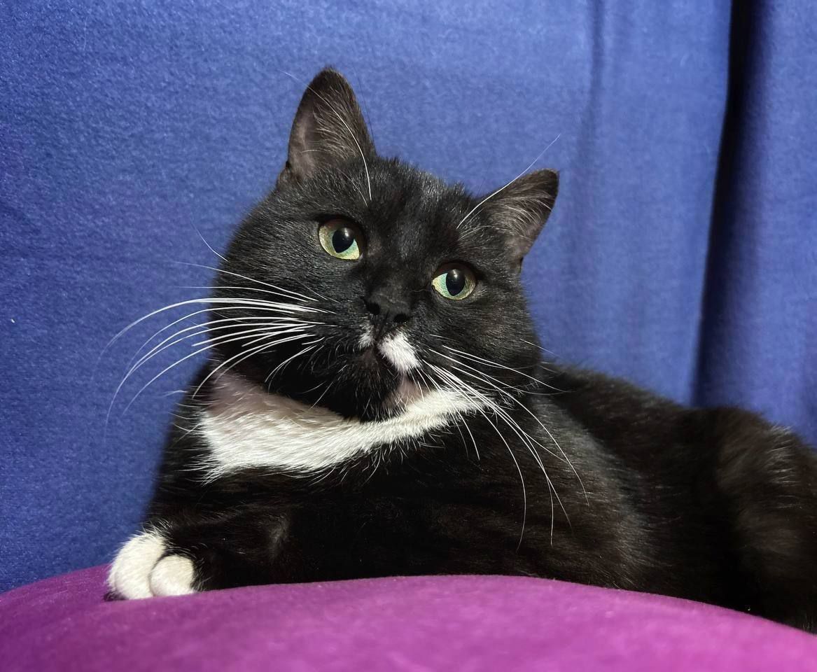 Иногда достаточно одного взгляда, чтобы понять — перед вами особенный кот. У Маркиза именно такой взгляд. Немного грустный, очень внимательный и удивительно трогательный. Маркизу всего 10 месяцев. Он ещё подросток, который только начинает взрослеть. Впереди у него целая жизнь — и со временем этот юный кот обязательно превратится в настоящего роскошного красавца. У Маркиза очень эффектная внешность. Его черная шерсть выглядит благородно и контрастно, а настоящей изюминкой стали белоснежные усы, которые ярко выделяются на тёмной мордочке. Из-за них он кажется особенно выразительным и немного аристократичным — как настоящий кот с характером. Но главное в Маркизе не внешность.