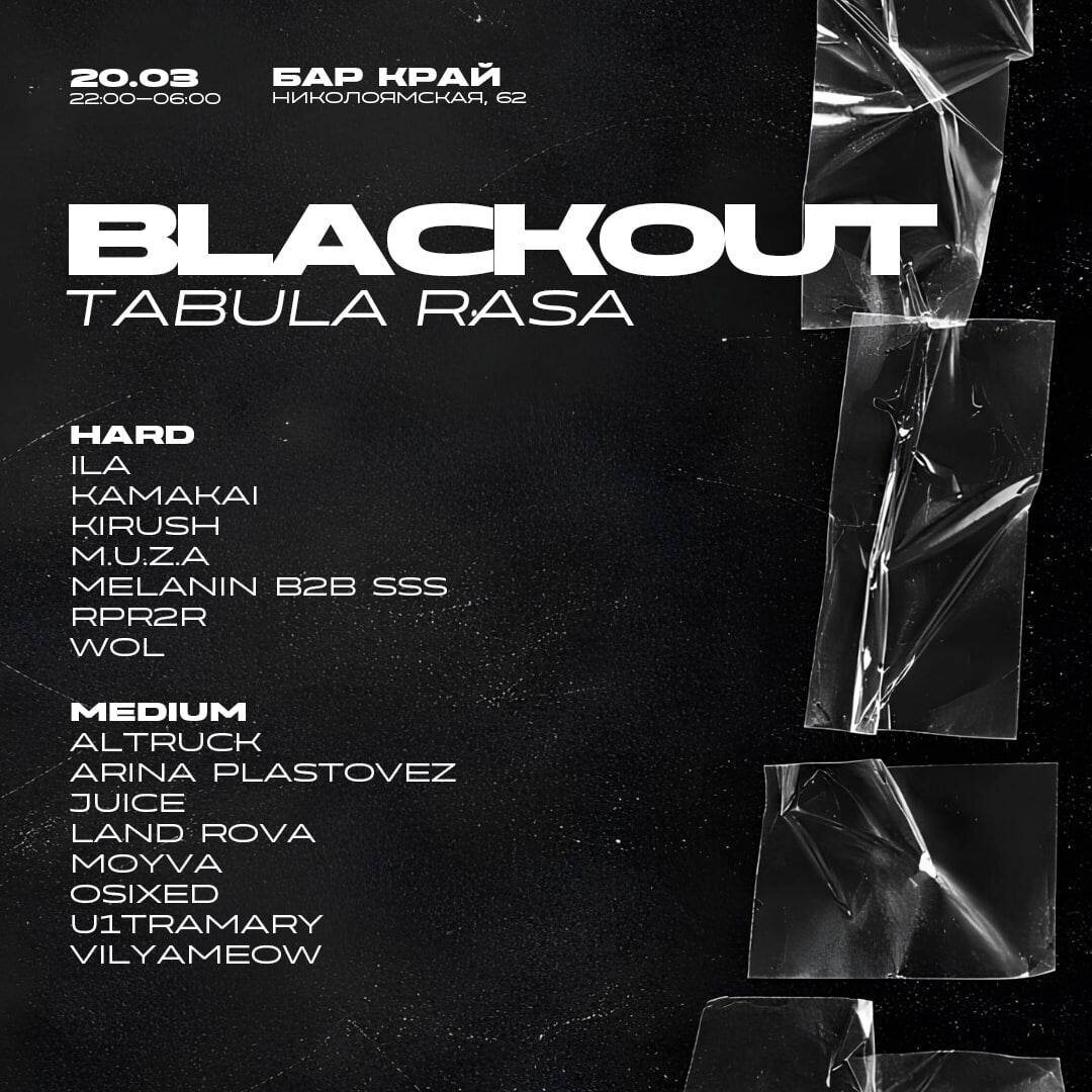Здесь ты забудешь себя прежнего. Ты чистый лист. Настоящий и свободный. Хотя бы на одну ночь… HARD TECHNO/ SСHRANZ Жёсткое, индустриальное техно. Высокий BPM. Рваные ритмы. Стробы, вырывающие силуэты из темноты. Здесь можно забыться полностью. ILA KAMAKAI KIRUSH M.U.Z.A MELANIN b2b SSS RPR2R WOL HYPNOTIC / HARDGROOVE Глубокий звук, лазеры в густом дыму. Здесь время останавливается и ты растворяешься. ALTRUCK ARINA PLASTOVEZ JUICE LAND ROVA MOYVA OSIXED U1TRAMARY VILYAMEOW 🎫 Билеты 📆 20 марта, 22:00–06:00 📍Бар Край, Николоямская 62, Москва