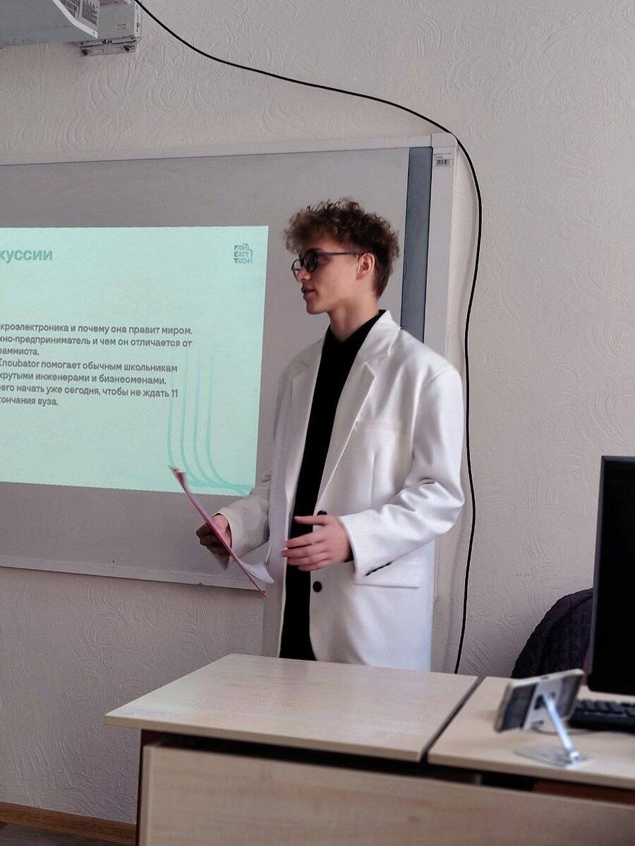 ! Сегодня Липочкин Степан и Русов Арон, представители инженерного класса провели лекцию на тему "Технологическое предпринимательство и развитие микроэлектроники" для студентов 2 курса ИФТИС МПГУ Благодарим директора ИФТИС МПГУ Лозовенко Сергея Владимировича и профессора кафедры философии Подругину Ирину Алексеевну! #Школа1409 #Предпрофкласс