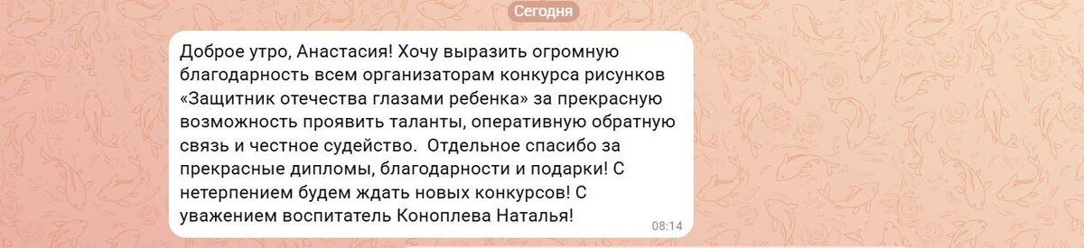 » 23 марта 2026 года в 12.30 в офисе Астраханского реготделения ЛДПР (ул. Красная Набережная, 37) состоится награждение победителей конкурса детских рисунков «Защитник Отечества глазами ребенка», приуроченного к одноименному празднику. Напомним, участие в конкурсе приняли свыше 200 человек. По решению организаторов выбраны 10 победителей, занявших первое место, по 10 серебряных и бронзовых призеров. Несколько лауреатов и призеров подарки уже получили – члены аппарата вручили им во время выполнения агитационной работы в селах. Ответ не заставил себя ждать. В реготделение «прилетела» благодарность из села Сасыколи Харабалинского района от воспитателя «СОШ с. Сасыколи им. Г.Г. Коноплева» Натальи Коноплевой.