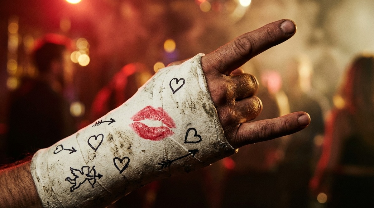 Пошёл. Через десять минут выходит. Глаза горят, гипс на месте, но на белом следы красной помады.