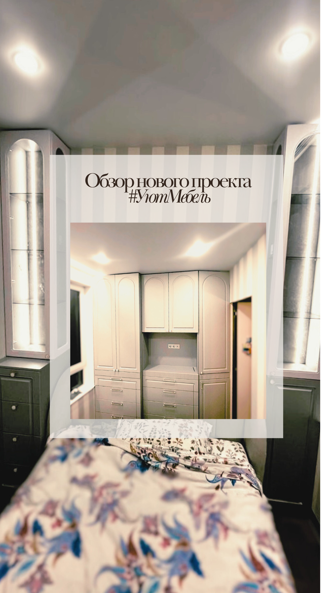 Шкаф и две колонны в одном стиле — рассказываем о проекте для Вероники Вероника хотела, чтобы спальня объединила хранение и зону у кровати — и выглядела как единое целое. Не просто мебель, а история, которая начинается с порога спальни и заканчивается тишиной перед сном. К нам обратились с запросом на комплект, где всё будет продумано до мелочей: и функциональность, и эстетика, и атмосфера. Мы сделали три предмета в одной стилистике: вместительный шкаф и две высокие колонны по бокам кровати. Рассказываем, как это получилось. Главная сложность — объединить зону хранения и прикроватную зону так, чтобы они не спорили, а дополняли друг друга. Вероника хотела, чтобы шкаф был максимально вместительным, а колонны — стройными, но ёмкими, с мягким светом по вечерам. Мы предложили решение на основе двух типов фасадов и единой цветовой гаммы, чтобы всё работало как ансамбль. Шкаф получился главным героем. Внутри: Корпус — ЛДСП Увадрев серый U9201, спокойный, благородный фон. Фасады — МДФ ПВХ Адил